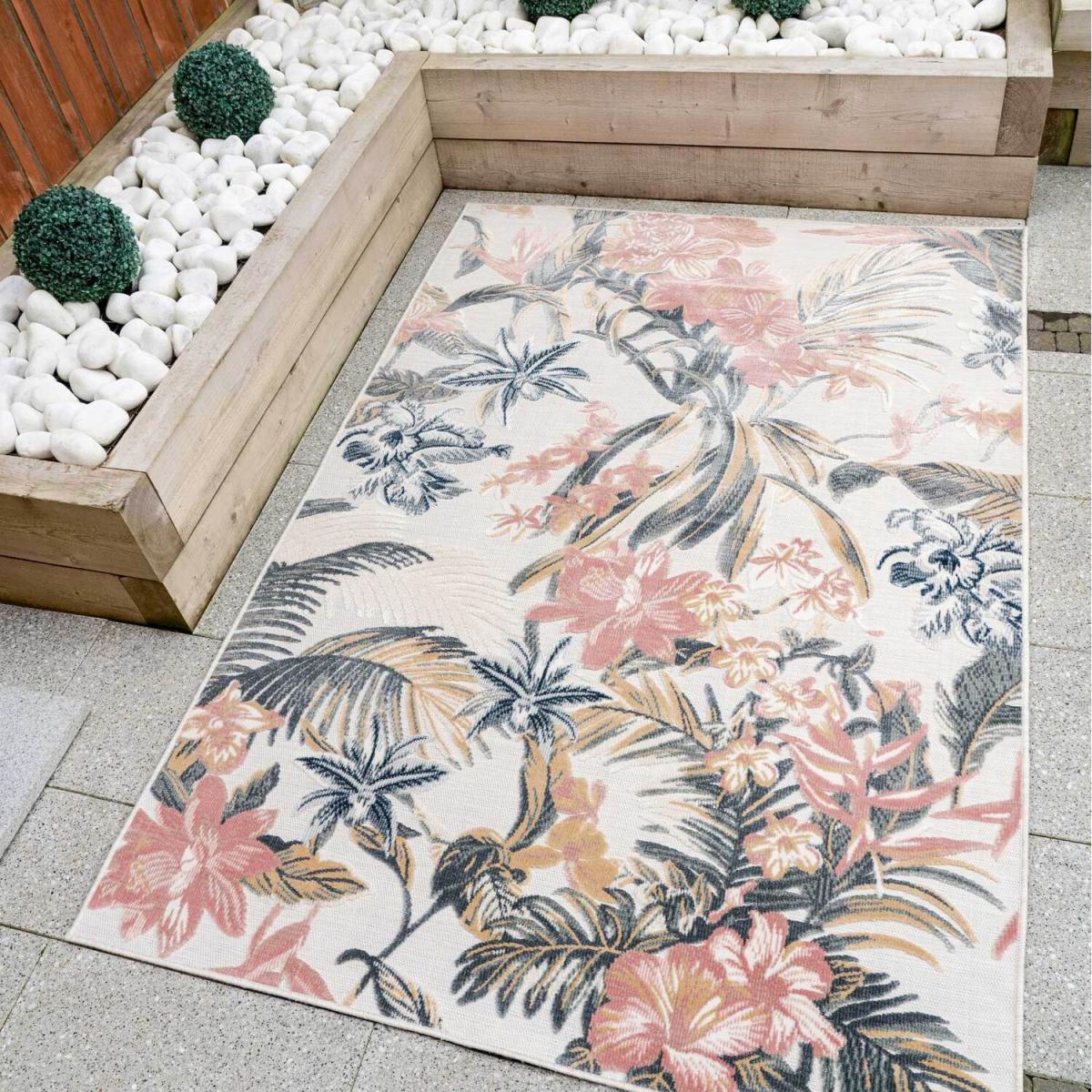 Introducing our flatweave Indoor Outdoor range of rugs. Made from polypropylene these rugs are easy care, hardwearing and can be wiped clean, perfect for placing under a dining table or in high traffic areas such as entrance halls and bedrooms. Featuring a tufted textured pile these really show off the beautiful floral and geometric designs. They are also weatherproof and stain resistant making them perfect for use in your garden and patio areas. Perfect for garden patios, entertaining guests in your outdoor space, and all manner of fun in the sun! We do recommend taking the rug inside during the winter months or storm weather to preserve the colour and keep your rug in perfect condition for longer.