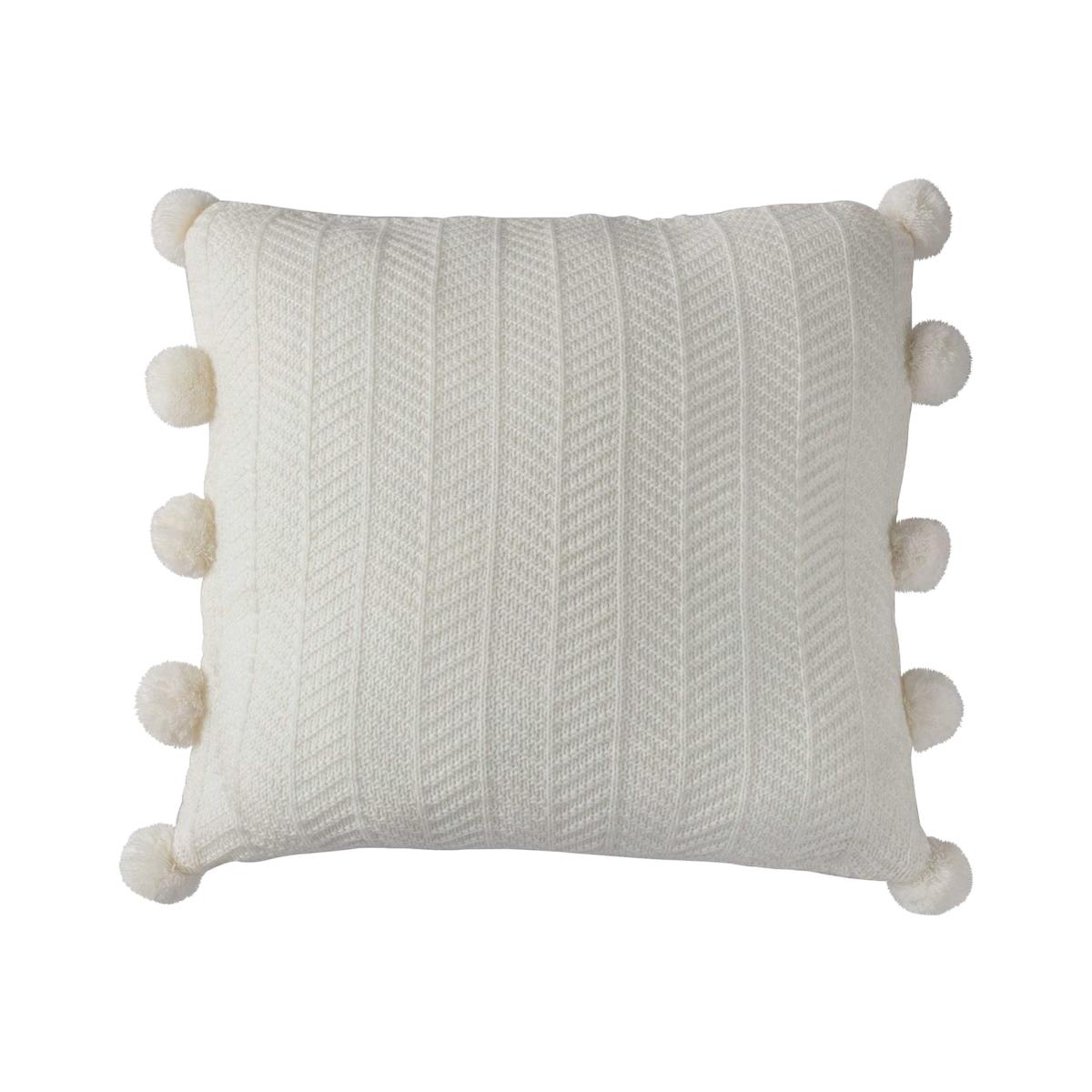 Cream Pom Pom Cushion, White | Barker & Stonehouse