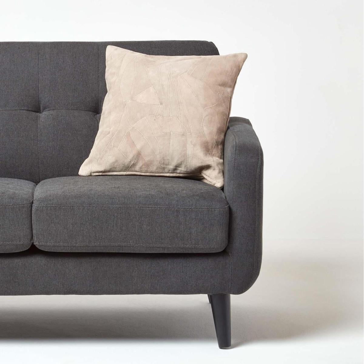 Handcrafted suede leather cushion cover from Homescapes to add design and texture to your home interiors. This cushion cover will easily complement any interior style. A natural fabric, suede feels soft and gentle to the touch, and the cover has been created out of recycled offcuts to reduce waste. This means that each cover is unique, as different off cuts are stitched together to create a patchwork style pattern. Mix and match with other colours from Homescapes suede and leather range such as cream and grey for a contemporary look that will never go out of style. The cover has a zip closure to make filling quick and easy and it has a cotton lining to protect the suede. Comes with a Homescapes feather cushion pad.
