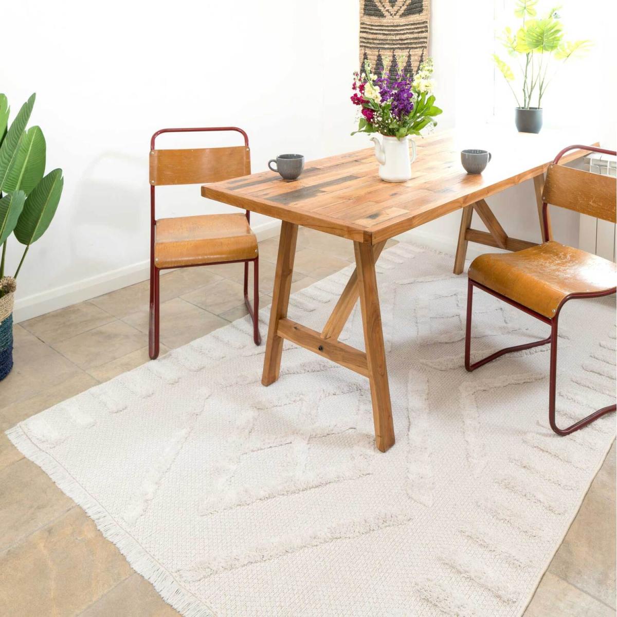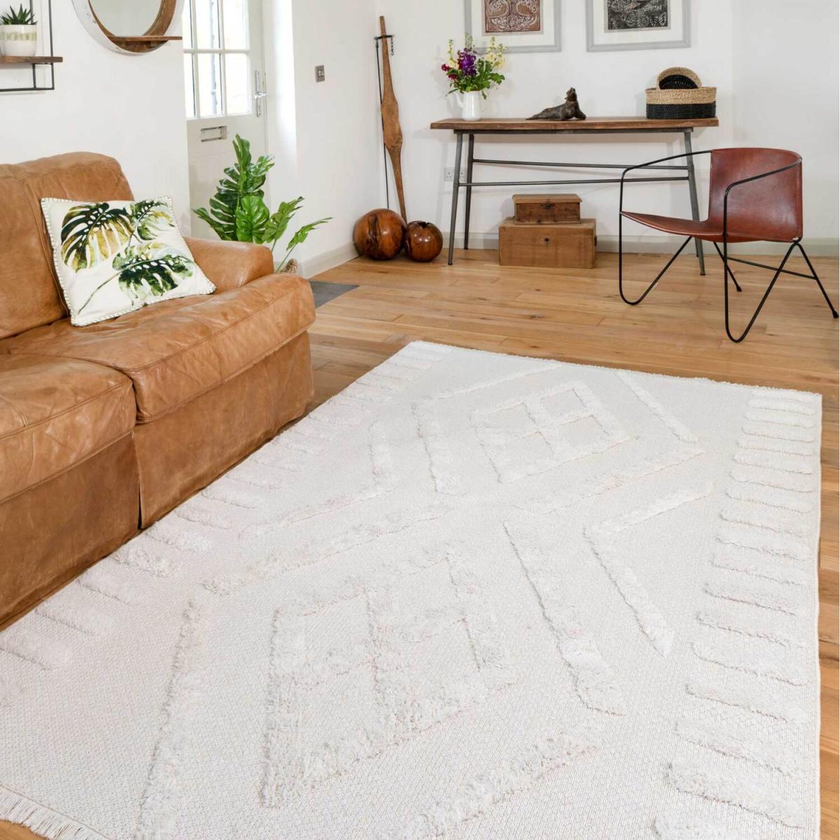Carefully crafted with the environment in mind, this beautiful collection is both versatile and eco-friendly. These rugs have been made using 100 recycled cotton and come folded to reduce their carbon footprint using less packaging. Featuring a 3D tufted cotton for added Boho charm these rugs are sure to make a statement in your home. This eco-conscious masterpiece is delicately loomed with fringing, offering a lightweight yet durable addition to your living space. Perfect for bedrooms, living rooms and placing under dining room tables. Please note, due to the eco-friendly nature of the material there may be a very slight variation on listed sizes.