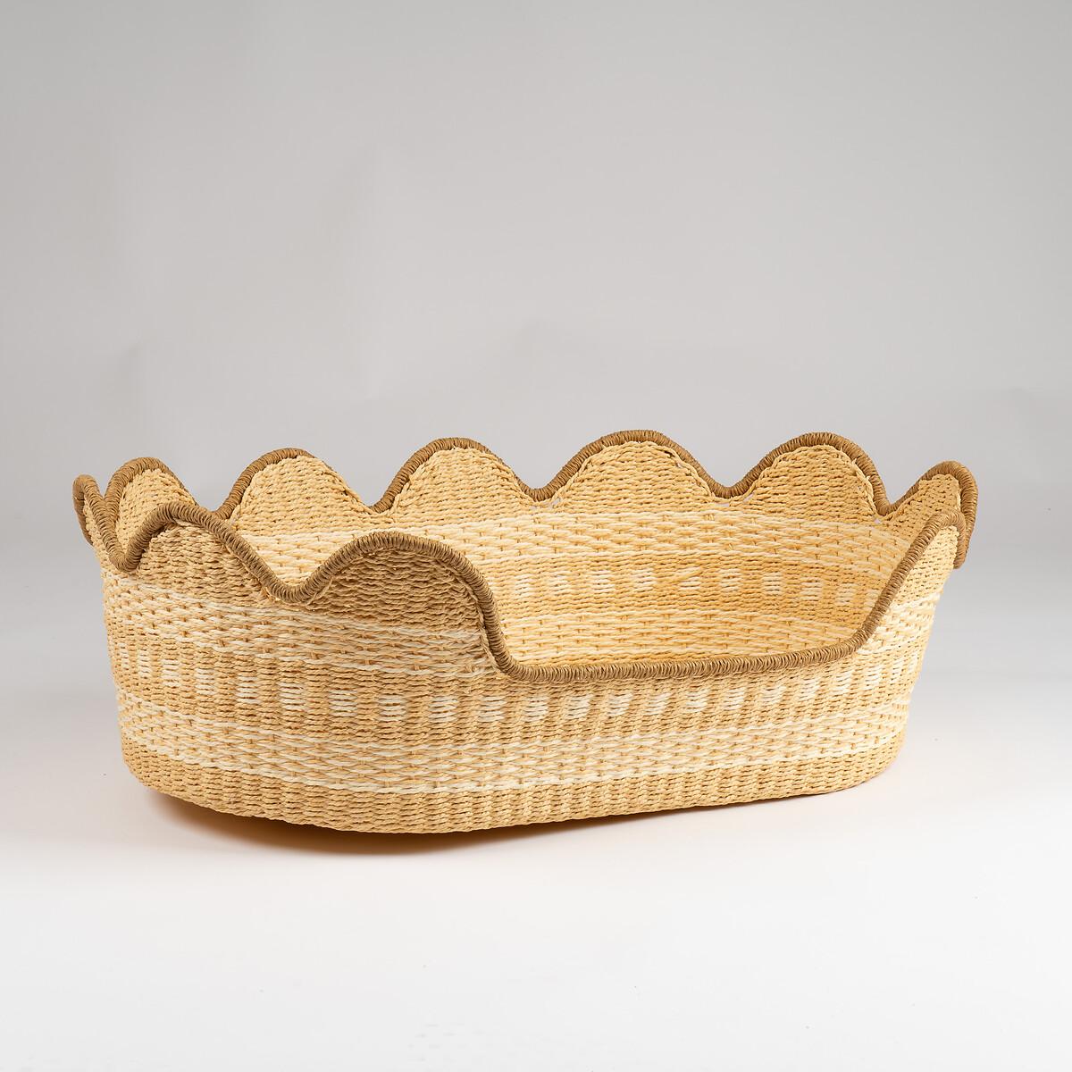 Natural and Cream Scallop Edge Woven Pet Bed with Cushion Medium