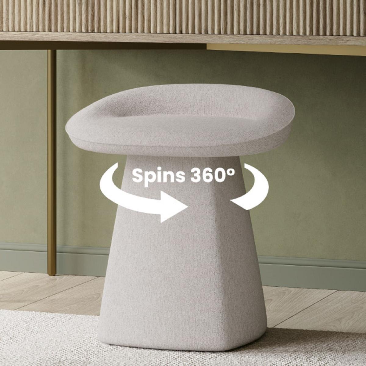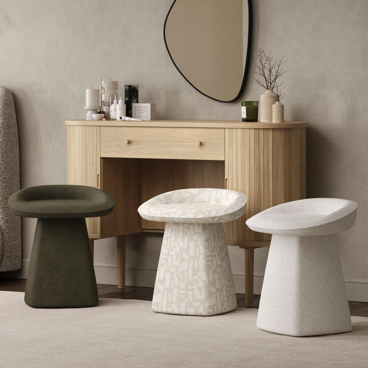 Featuring a soft, rounded top and sleek sculptural base, Koda stool effortlessly adds a stylish touch to any space, making it perfect as a dressing table stool or an accent piece. Upholstered in a soft-touch cream-textured fabric, this stool offers a sophisticated element to your decor. Elevate your space with the Koda Swivel Stool—the perfect blend of modern design and everyday comfort. Upholstered in a soft, cream-textured fabric, it effortlessly complements a variety of interiors, from minimalist vanity setups to cosy bedroom corners.