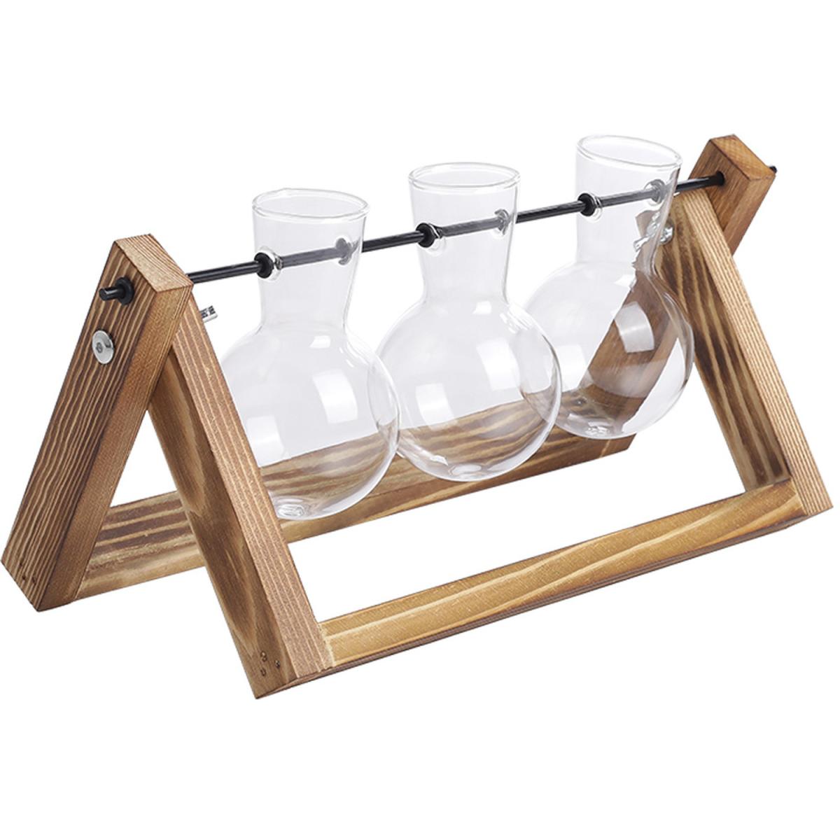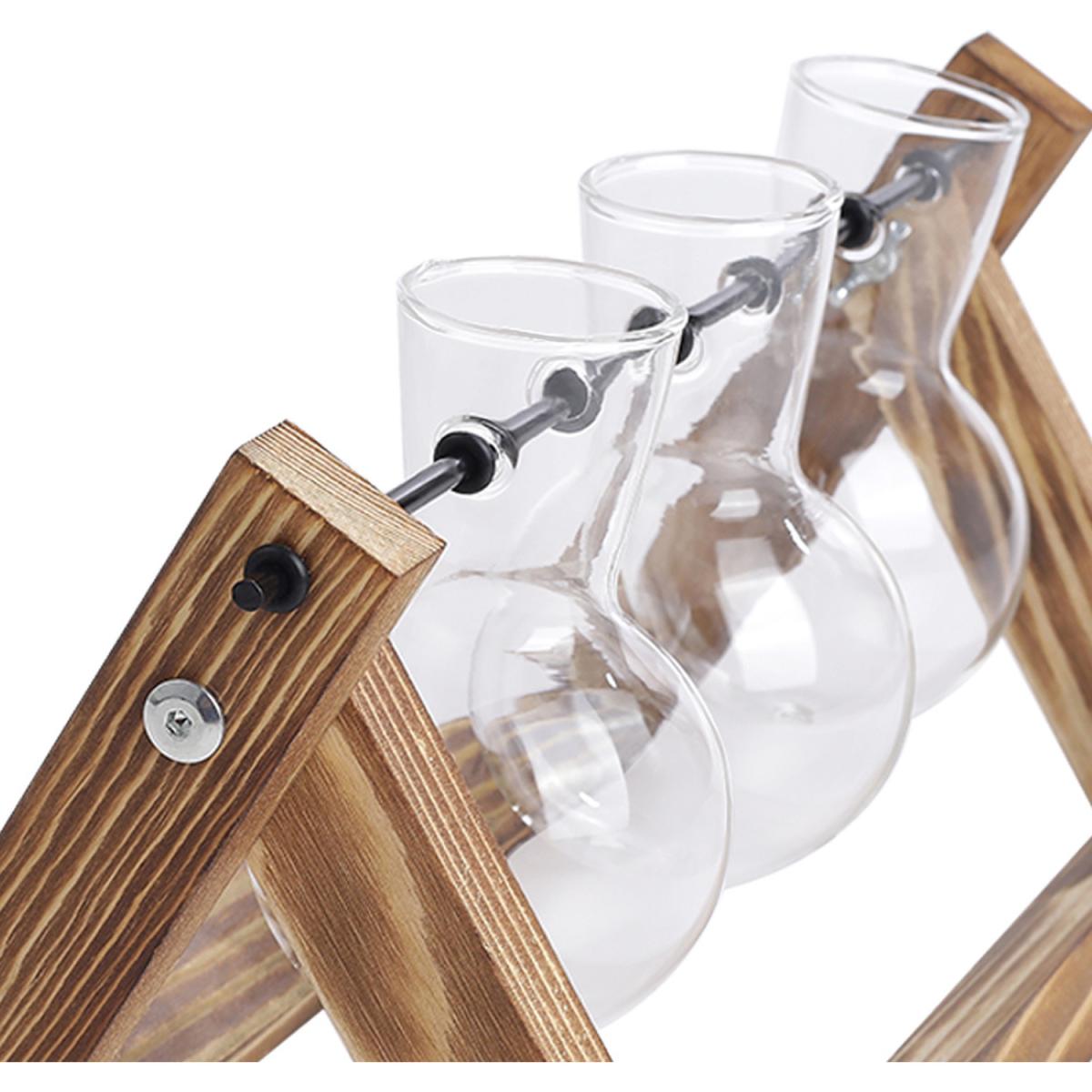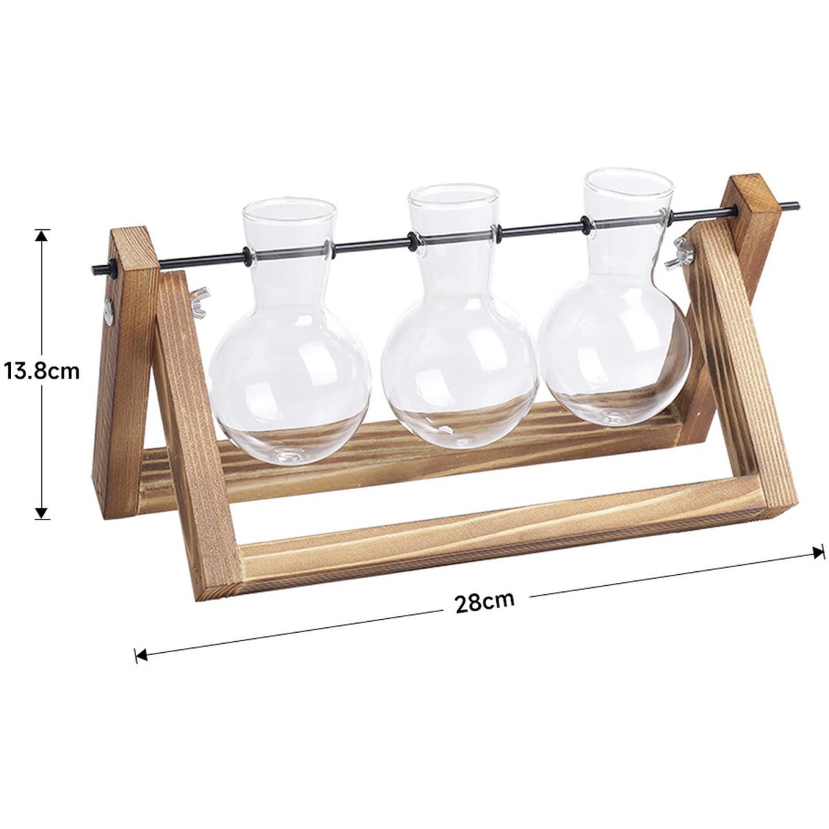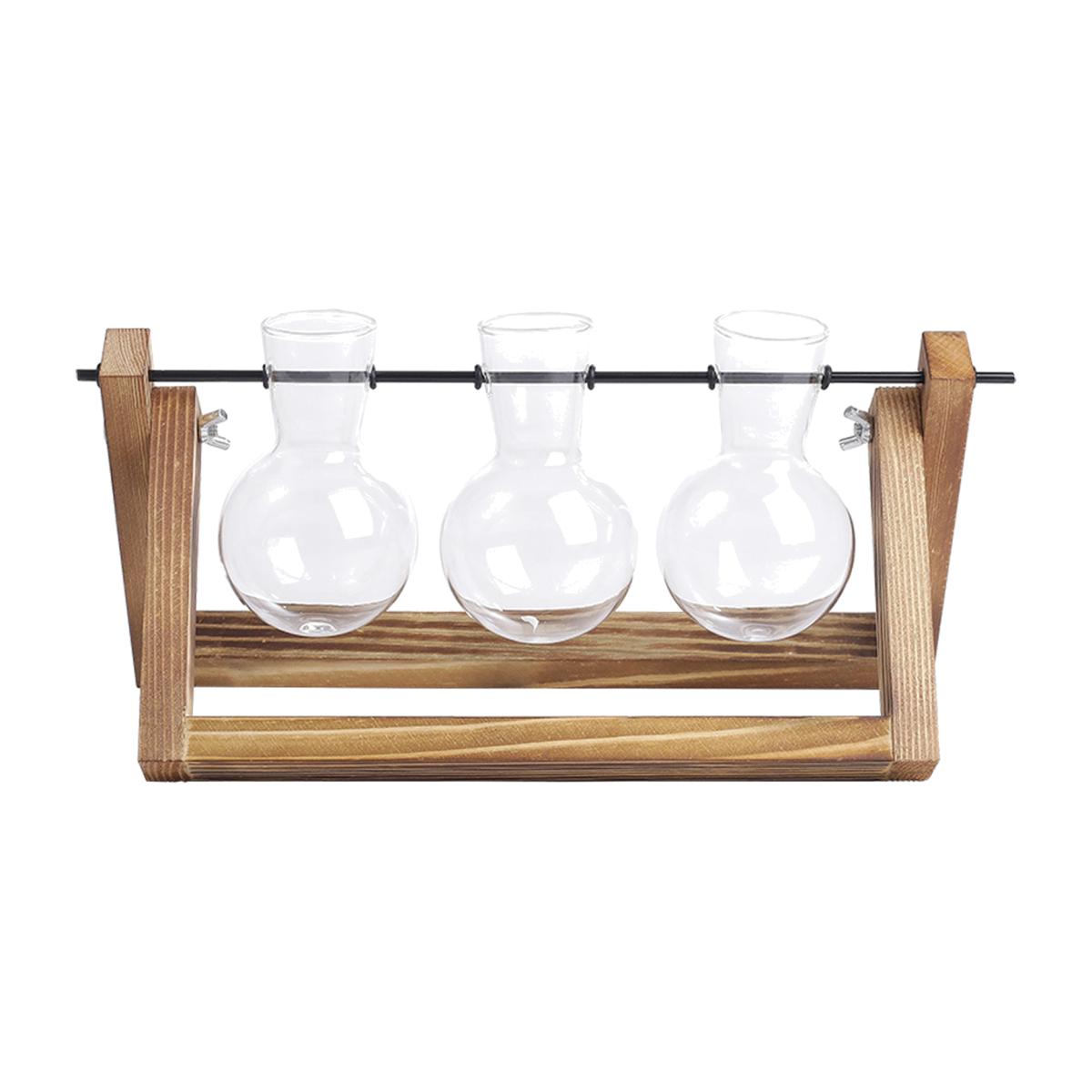 Creative 3pcs Bulb Glass Vases Wood Stand Set - Brown