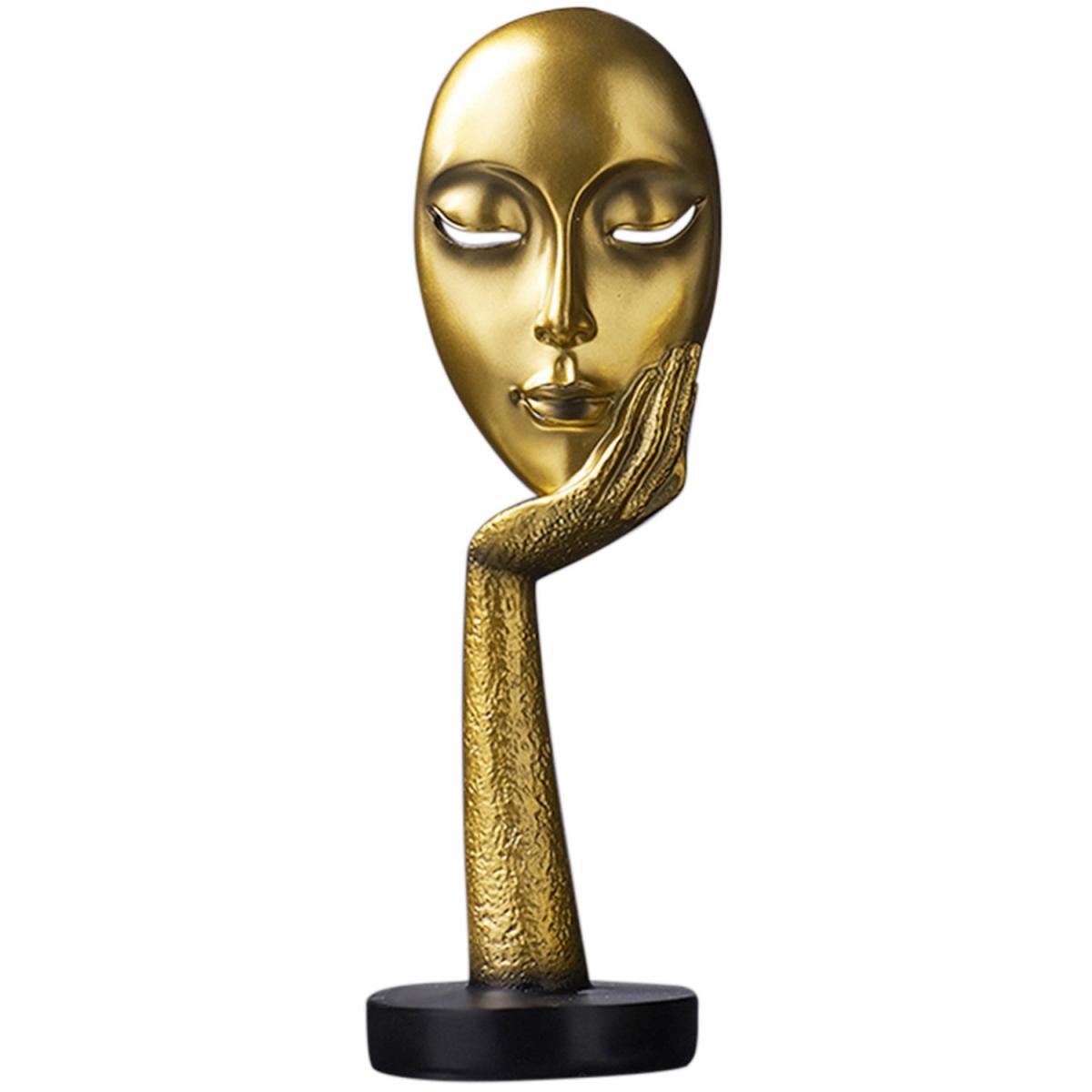 Creative Thinking Face Figurine Sculpture - Gold / 37cm