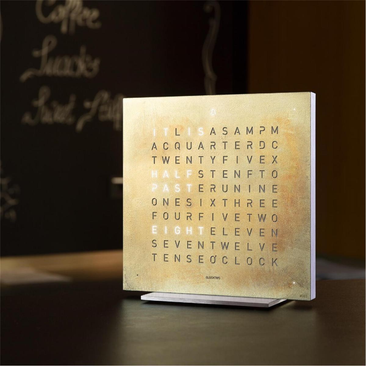 Start your day the right way. QLOCKTWO have reimagined the classic alarm clock by displaying time in written words. The time is displayed in five minute intervals with four dots to represent the minutes in between: one dot will illuminate to show that it’s one minute past the time displayed; two dots will illuminate to show two minutes have passed. The cover is held on by magnets, making it easily changeable to suit your interior. The alarm function is activated by pressing the alarm function on the back of the clock, and the letters’ brightness automatically adjusts to the ambient light. What’s more, the night setting enables you to turn off the light completely, and read the time with a simple touch on the top of the clock.
