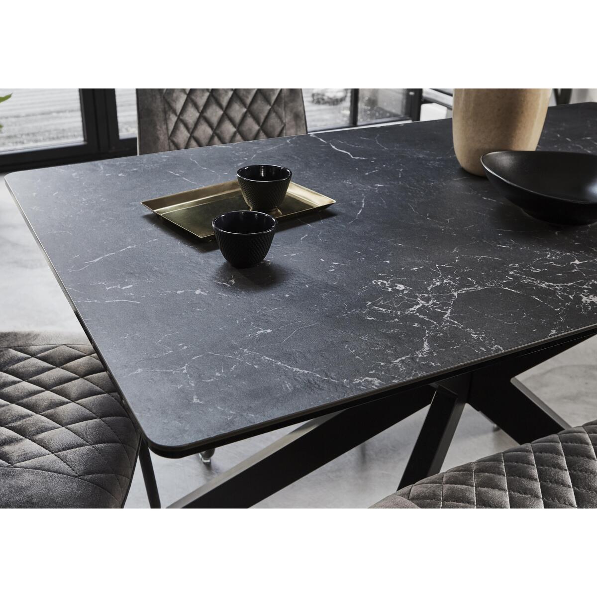 Industrial style has never looked so sleek - or so cool. The Creed range brings a new dimension to this always-popular trend and lifts up any space with its dramatic design. Its fantastic range of occasional and dining furniture lets you create the industrial interior you’ve always dreamed about. Dark ceramic tabletops, powder-coated iron starburst bases and sleek lines abound. Plus, modern chairs and benches are upholstered in an ultra-soft velvet for long-lasting comfort. Available in a wide selection of sizes with many compact options on offer for smaller spaces. This Creed range is exclusively available at Furniture Village. Transform your dining room with the sleek, sophisticated and thoroughly industrial Creed Large Dining Table. Its dark ceramic finish looks striking with any décor. Why you’ll love it. A stunning table that makes everyday dining a real occasion. A modern and sophisticated industrial style. Stylish and durable ceramic tabletop. Eye-catching black, powder-coated iron starburst base. Large enough to seat 8 people. Made with care exclusively for Furniture Village. What you need to know. The base is made from black powder-coated iron. The ceramic top will have unique and distinctive characteristics. The tabletop is heat, scratch and water resistant. Use coasters to protect the surface. The Creed range includes a stylish selection of storage, living and dining room furniture.