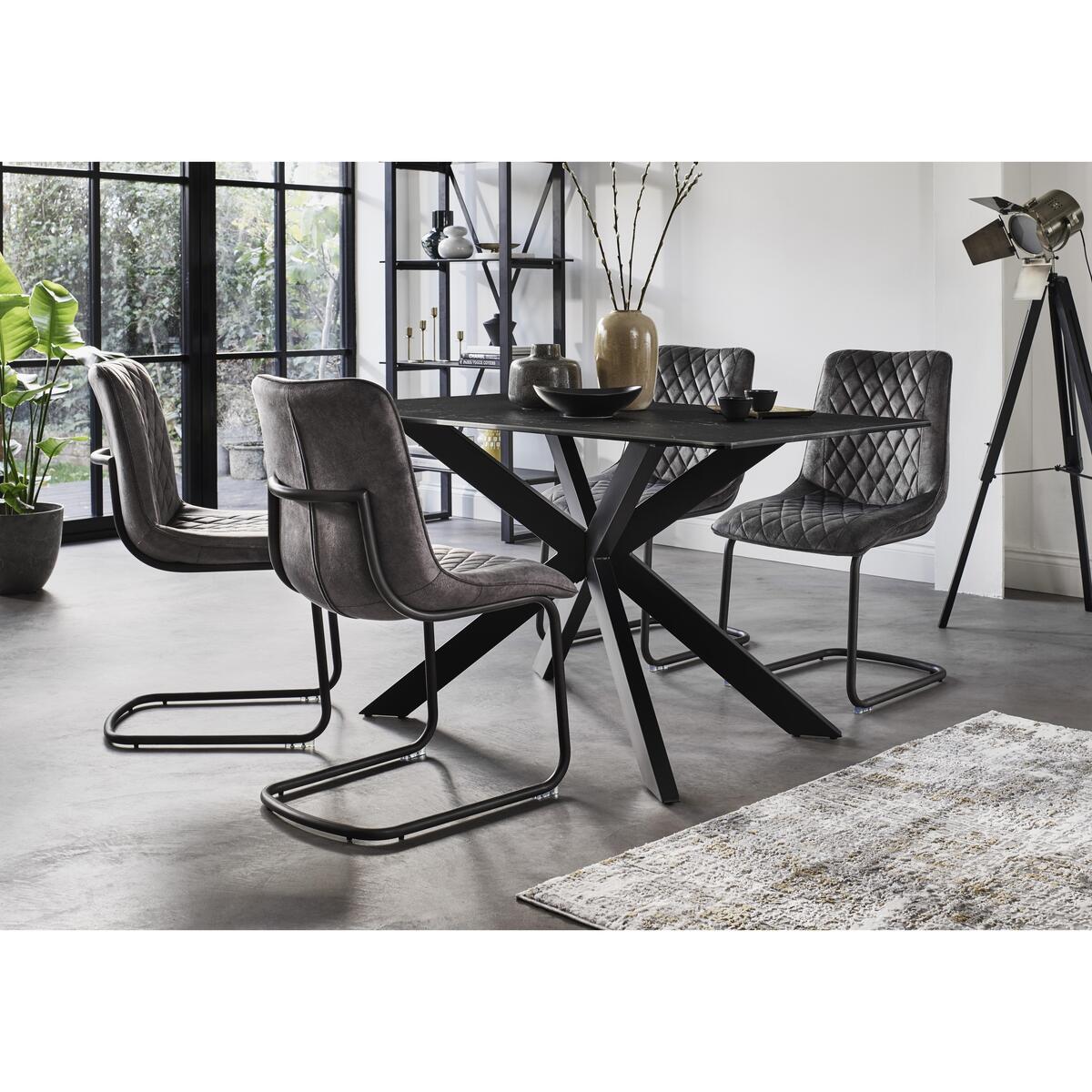 Industrial style has never looked so sleek - or so cool. The Creed range brings a new dimension to this always-popular trend and lifts up any space with its dramatic design. Its fantastic range of occasional and dining furniture lets you create the industrial interior you’ve always dreamed about. Dark ceramic tabletops, powder-coated iron starburst bases and sleek lines abound. Plus, modern chairs and benches are upholstered in an ultra-soft velvet for long-lasting comfort. Available in a wide selection of sizes with many compact options on offer for smaller spaces. This Creed range is exclusively available at Furniture Village. Transform your dining space with the Creed Small Dining Table. A striking, contemporary industrial design that gives any interior a bold, dramatic edge. Why you’ll love it. A stunning table that makes everyday dining a real occasion. A modern and sophisticated industrial style. Stylish and durable ceramic tabletop with. Eye-catching black, powder-coated iron starburst base. Its compact size is ideal for smaller dining spaces. Made with care exclusively for Furniture Village. What you need to know. The base is made from black powder-coated iron. The ceramic top will have unique and distinctive characteristics. The tabletop is heat, scratch and water resistant. Use coasters to protect the surface. The Creed range includes a stylish selection of storage, living and dining room furniture.
