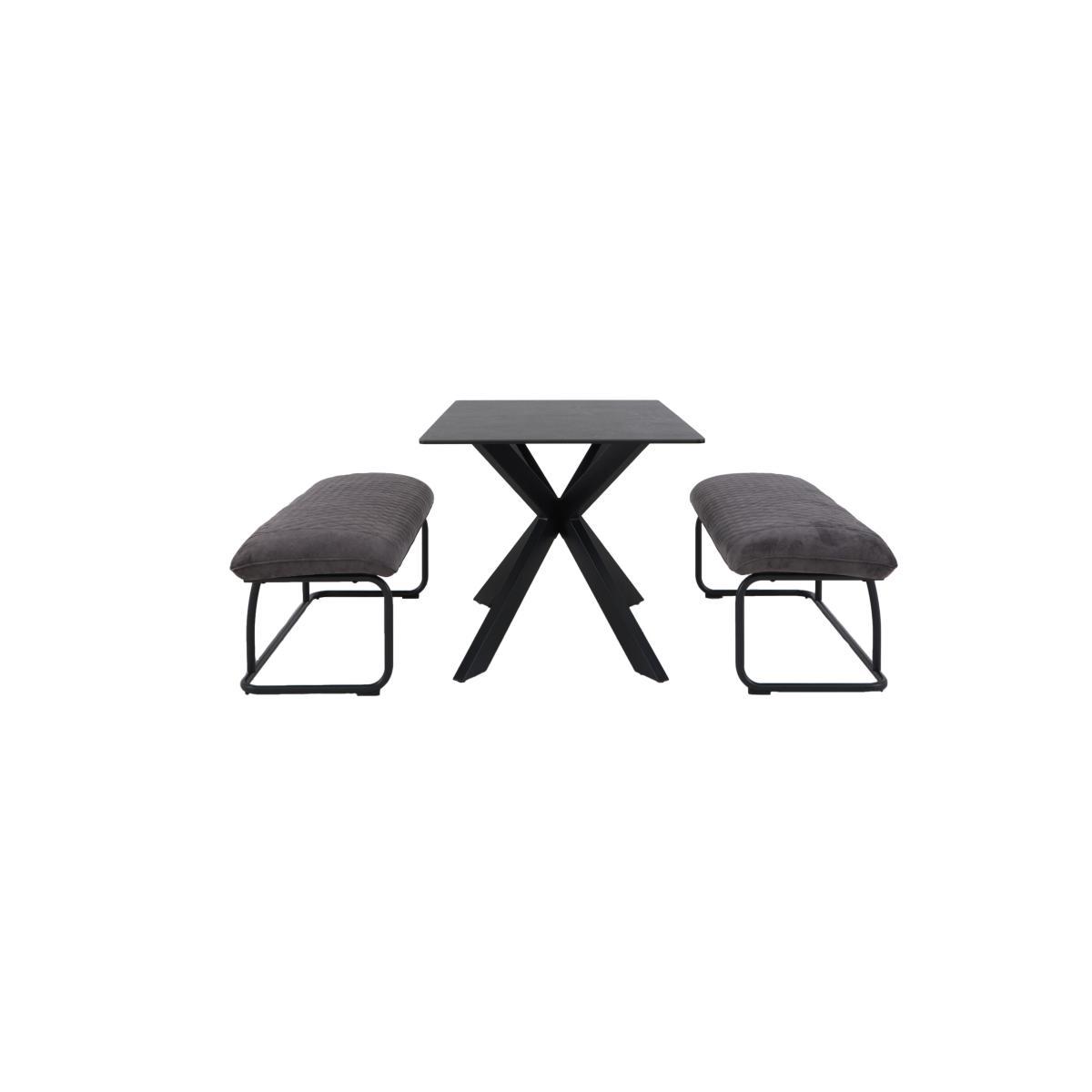 Industrial style has never looked so sleek - or so cool. The Creed range brings a new dimension to this always-popular trend and lifts up any space with its dramatic design. Its fantastic range of occasional and dining furniture lets you create the industrial interior you’ve always dreamed about. Dark ceramic tabletops, powder-coated iron starburst bases and sleek lines abound. Plus, modern chairs and benches are upholstered in an ultra-soft velvet for long-lasting comfort. Available in a wide selection of sizes with many compact options on offer for smaller spaces. This Creed range is exclusively available at Furniture Village. Dine in dramatic industrial style with the Creed Small Table and 2 Low Benches Dining Set. Cool, sophisticated and right on trend. Why you’ll love it. A stunning dining set that makes everyday dining a real occasion. A modern and sophisticated industrial design. Stylish and durable ceramic tabletop. Eye-catching black, powder-coated iron starburst base. Benches are upholstered in ultra-soft velvet for extra comfort. Quilted stitching in a stylish diamond pattern. Its compact size is ideal for smaller dining spaces. Made with care exclusively for Furniture Village. What you need to know. The base is made from black powder-coated iron. The ceramic top will have unique and distinctive characteristics. The tabletop is heat, scratch and water resistant. Use coasters to protect the surface. The Creed range includes a stylish selection of storage, living and dining room furniture.