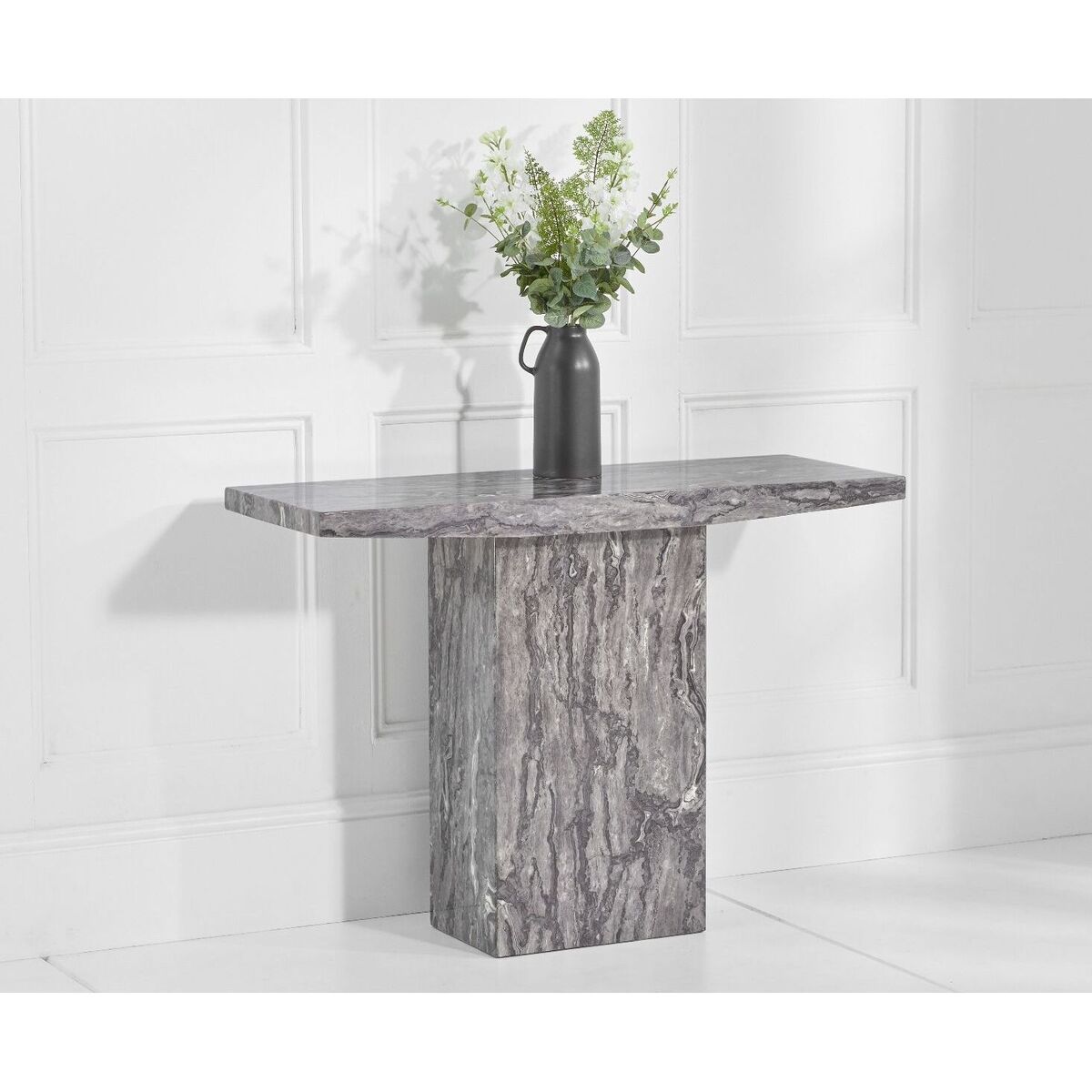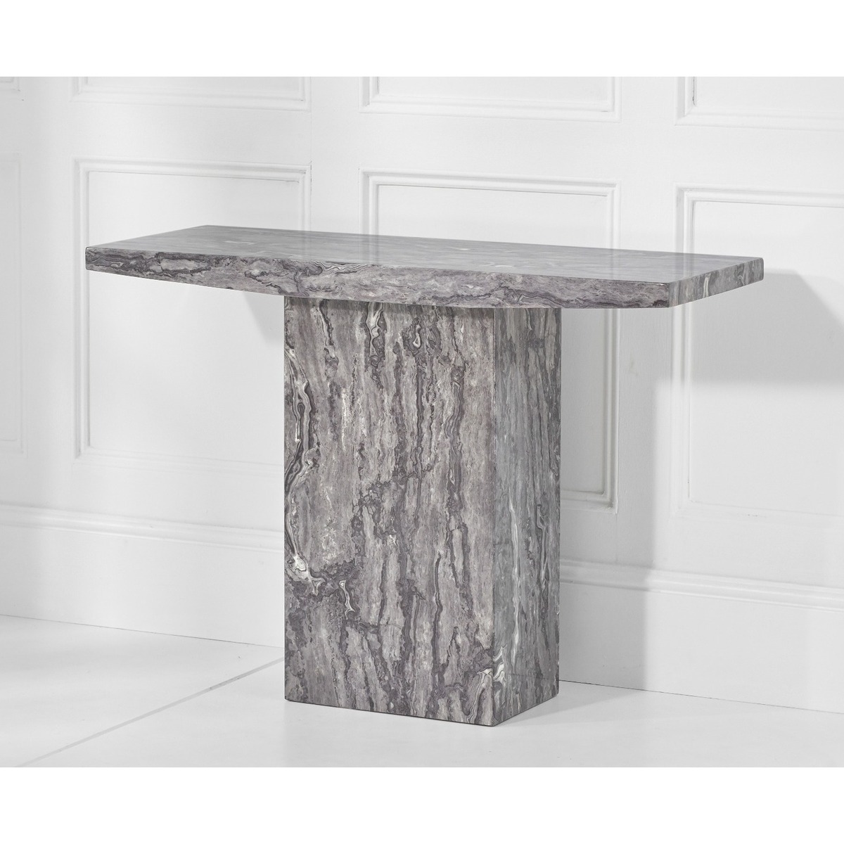 Featuring smooth clean lines, the Crema Grey Marble Console Table is a stunning addition to your home. Perfectly practical and unmistakably stylish, the grey marble console table is modern and durable and instantly updates any area of the home. Stylish and durable grey marble console table. Clean modern design. Natural high gloss marble pattern throughout gives a beautiful finishUV resistant. Heat resistant up to 50 degrees Celsius