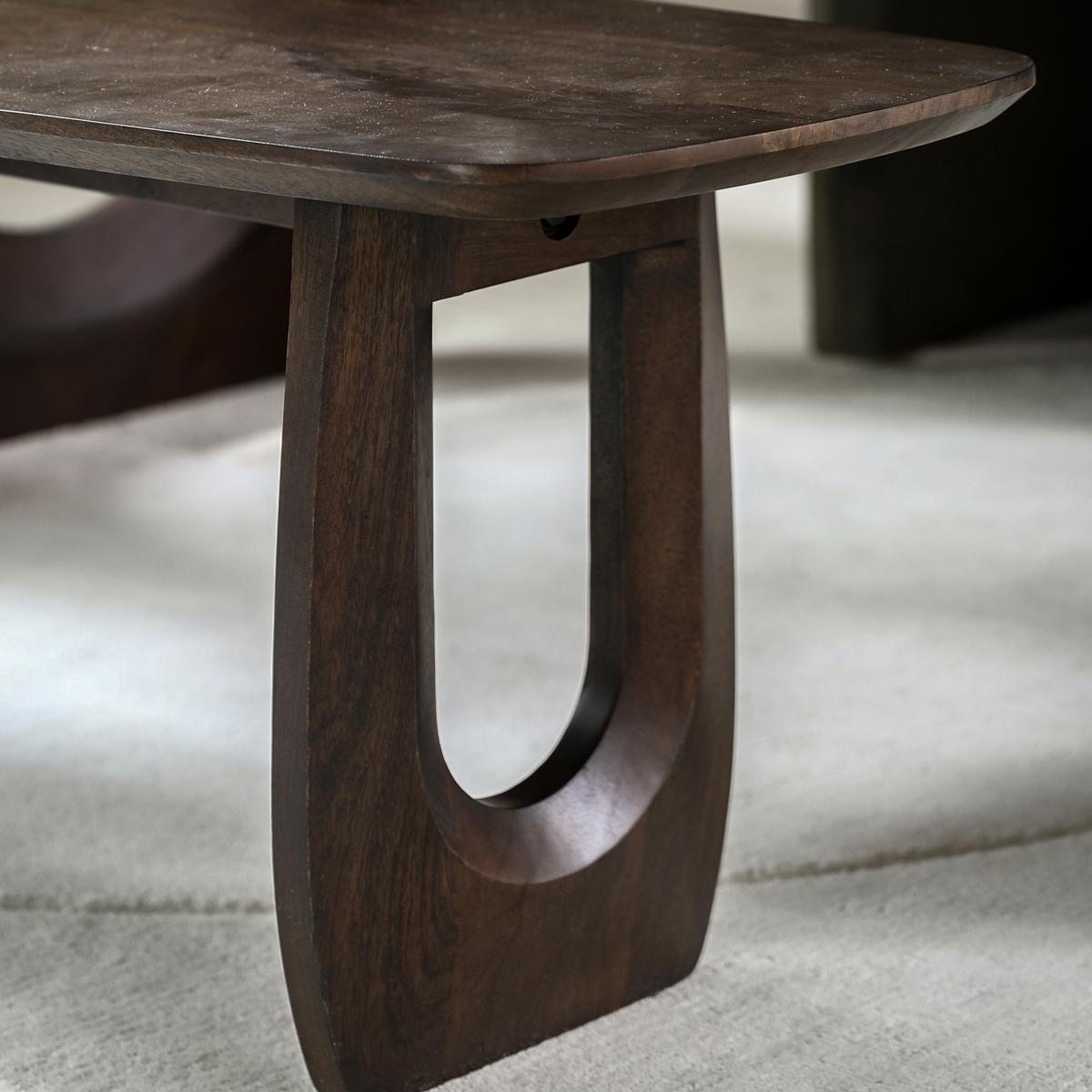 The Crescent Dining Bench features rich, dark wood tones with distinctive arch curves. Supported by sturdy legs, this bench offers a stylish but practical seating solution. Pair with the Crescent Dining Table for the ultimate dining experience.