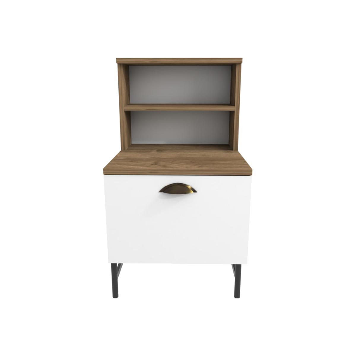 Cressi metal and partical board nightstand is practical and modern. With 83 cm height and 45 cm width, it is a functional and modern one. Its Walnut White and Black color will fit any bedroom. One cabinet, tabletop and shelf enable you to place your belongings within your arms reach. You can put your decorative items or night lamp on the top surface of the nightstand. The metal base makes it attractive, sturdy, and durable. It has an elegant metal handle on the drawer. You will enjoy using this piece of accent furniture for a long time. The nightstand is made of 18mm thick quality melamine coated particle board and banded with first-class PVC edge banding tape. Metal parts are coated with scratch and impact-resistant industrial static paint. Overall, it is manufactured using eco-friendly and health-friendly TSE certified materials. The product will be delivered to the customer in the original package as disassembled. It is designed to be assembled by the customer easily using simple household tools like a power drill. Assembly instruction and installation hardware are included in the package. For fast and error-free installation, product parts are numbered with stickers in accordance with the assembly guide.