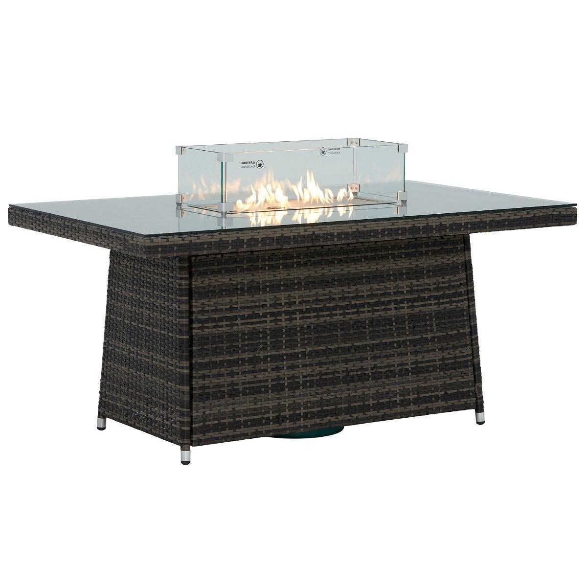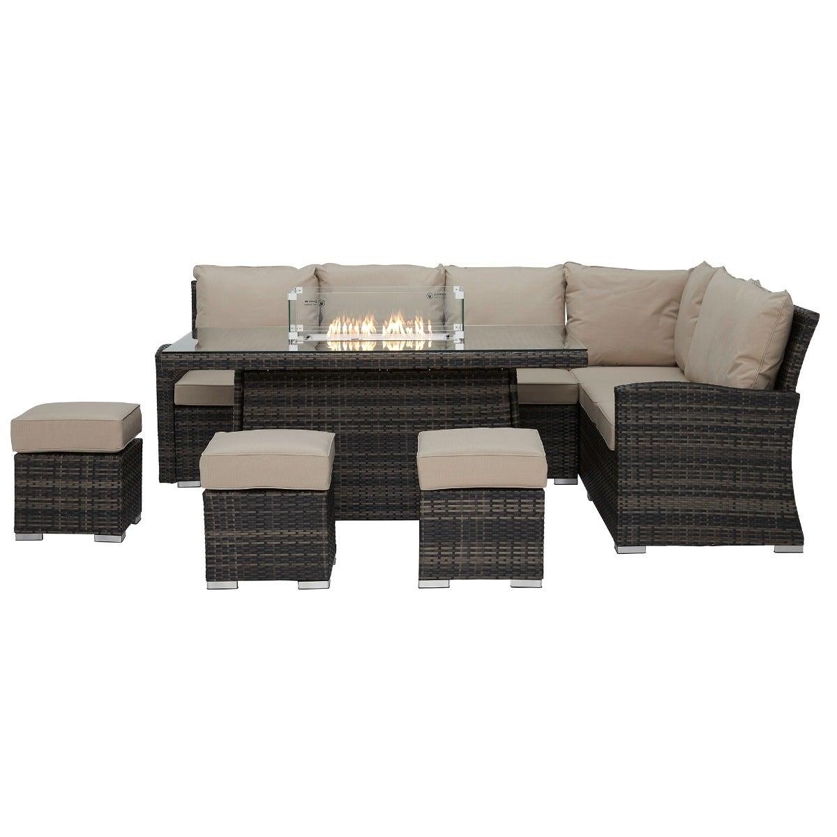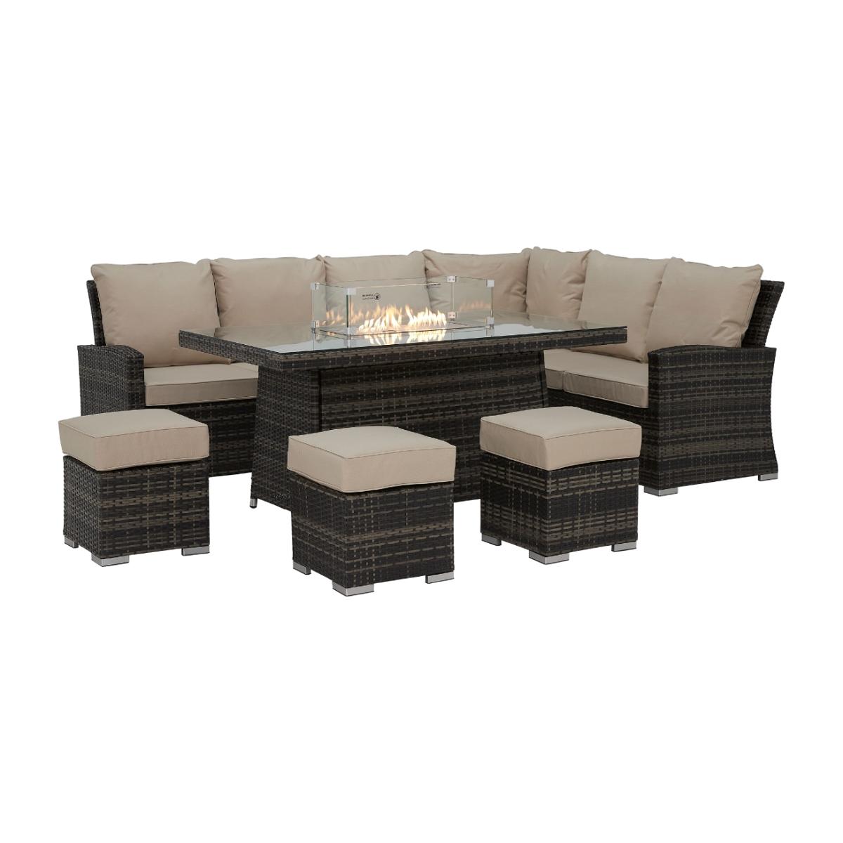 Cresswell Corner Garden Dining Set with Brown Weave & Beige Fabric with Fire Pit | Barker & Stonehouse