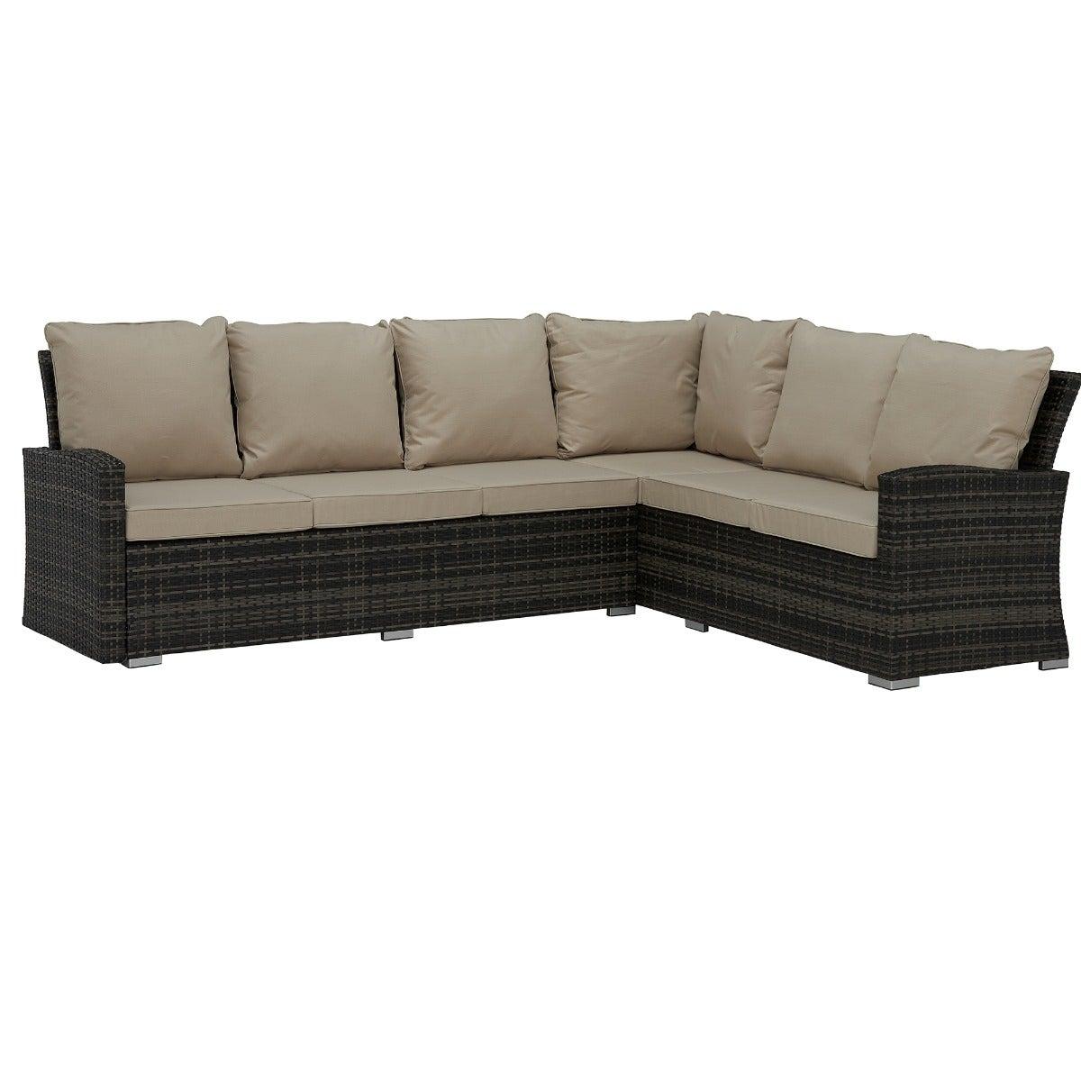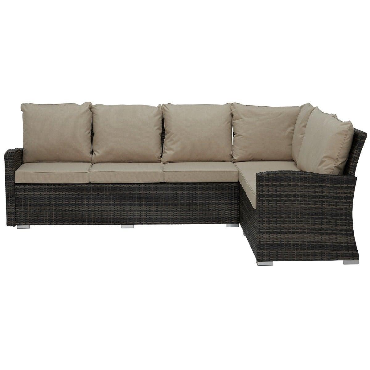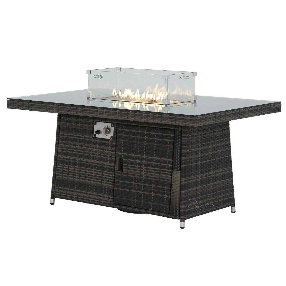 Cresswell Corner Garden Dining Set with Brown Weave & Beige Fabric with Fire Pit | Barker & Stonehouse