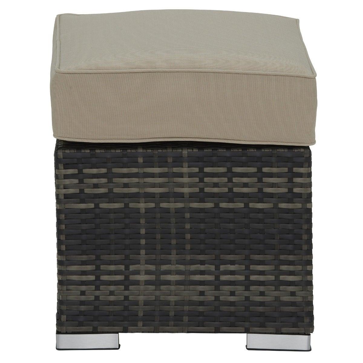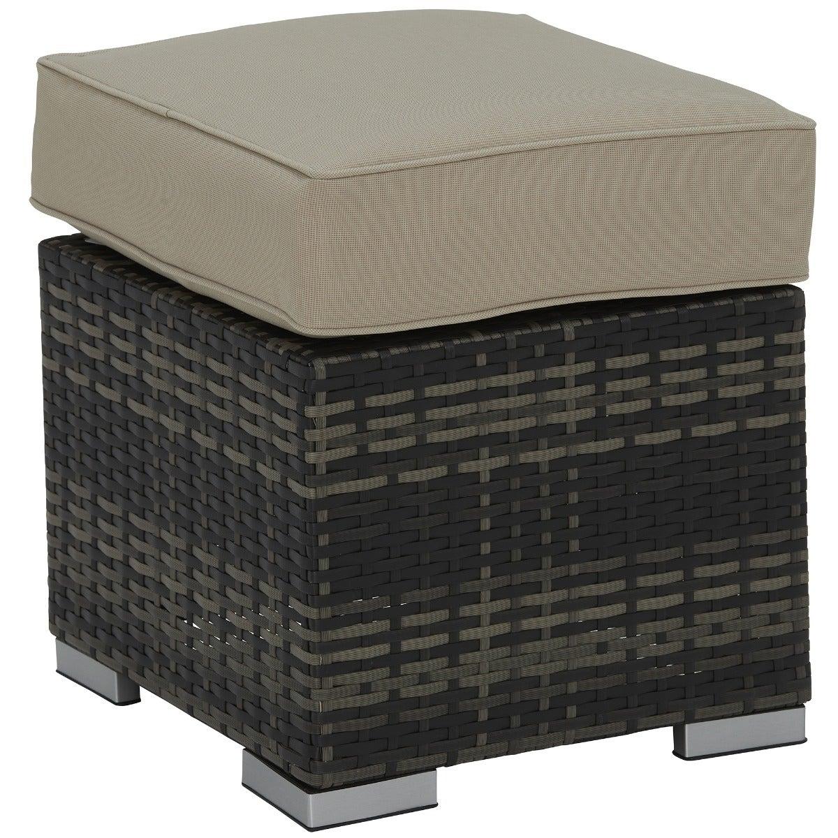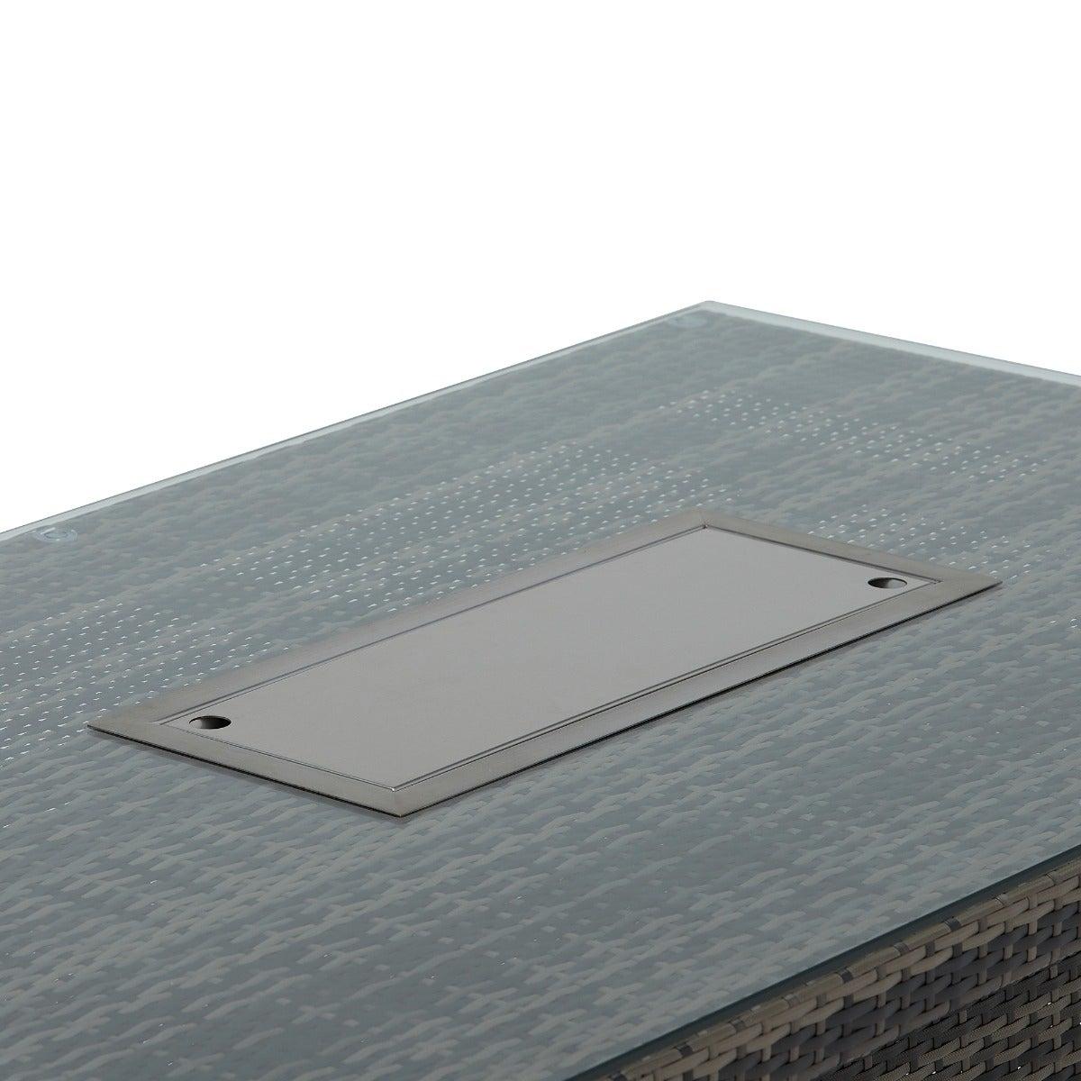 Design. Enjoy your outdoor space with friends and family to the total max on the beautiful Cresswell Corner Garden Dining Set with Brown Weave and Beige Fabric with Fire Pit. The corner sofa and three stools provide plenty of space to accommodate your guests while being super comfortable too, with deep-filled fibre and foam cushions. Boasting a sturdy, clean lined base, the table is complete with elegant rattan weave and a glass top for protection and security. The fire pit feature taking this stunning set to the next level of luxury, create a cosy atmosphere for when the night starts to draw in.