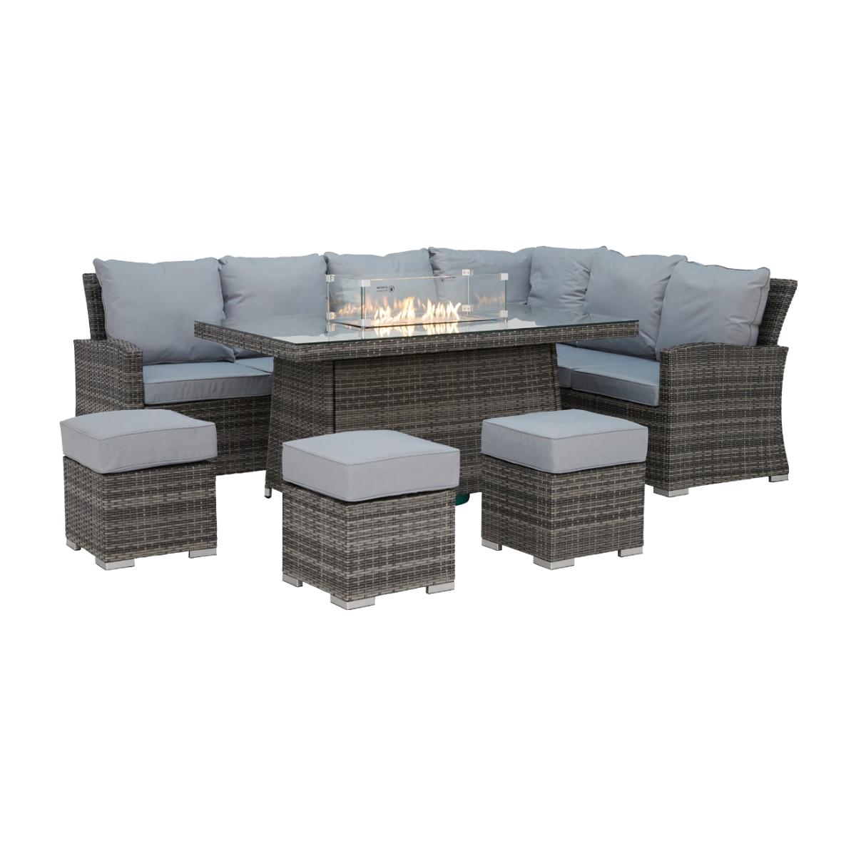 Cresswell Corner Garden Dining Set With Grey Weave & Grey Fabric with Fire Pit | Barker & Stonehouse