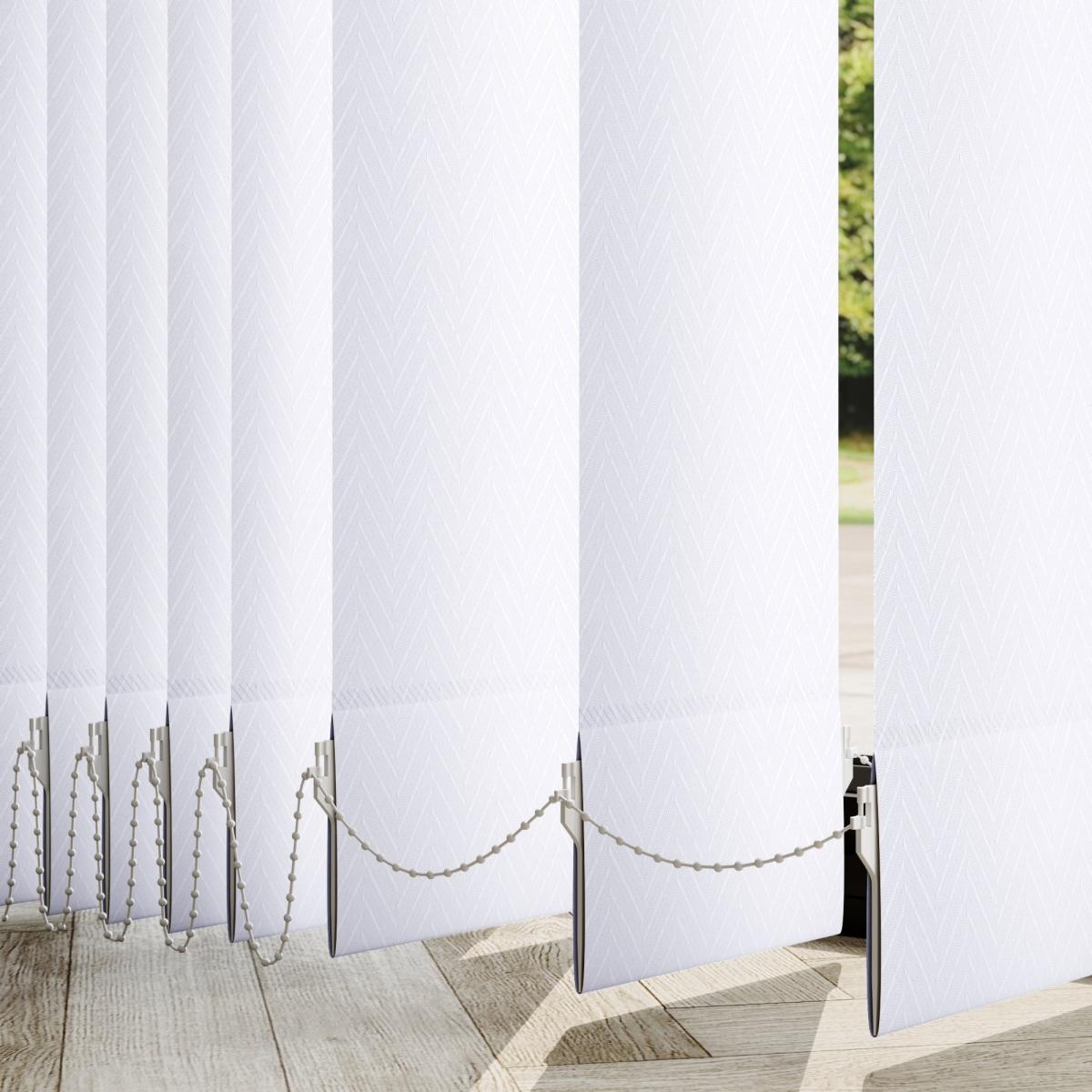* Featuring new standard headrail* Wand control type option only* Choose your fabric and colour* Select your fitting type and bracket type* Pick your stack side and bottom weight Featuring a herringbone-style pattern, the contemporary pattern of the Cresta is an easy choice for a stylish, timeless finish to your space. Please note that there will be batch differences so the sample may vary slightly to the product. There is also a 0.5mm tolerance for the product.**Choosing your fitting type:*** Inside the recess: this gives a tidy, snug finish as it's made to fit your window exactly. * Outside the recess: this option is great if you want more light to enter your room when the blinds are open.**Choosing your bracket type:*** Top fix: fitted into the top of the window recess or ceiling for a neat finish. Recommended for inside recess.* Face fix: fitted to the wall above the window, outside of the recess so your blind will cover the entire window. Recommended for outside recess. Available in standard 89mm or longer 127mm lengths.**Choosing your stack side:*** Left stack: your blind slats will stack to the left of your window or door. * Right stack: your blind slats will stack to the right of your window or door.**Choosing your bottom weight:*** Chained weights: each blind slat is weighted and includes a stabilising chain at the bottom which gives a classic feel and is great for drafty days. * Chainless weights: each blind slat is weighted at the bottom removing the need for a stabilising chain. This option is more pet and child friendly.**Need help deciding or measuring? **Book a free appointment with one of our consultants! dunelm. com/category/made-to-measure/book-an-appointment).