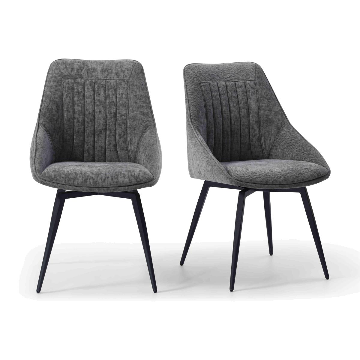 Ready to transform your dining room? Our Crete range makes it easy to give any space that high-end interiors magazine look thanks to its combination of materials and finishes – gorgeous high-gloss white ceramic, matt black powder-coated metal and luxurious velvet upholstery. This carefully curated range comprises a handmade ceramic-topped extending dining table that’s available in two sizes, velvet swivel dining chairs and sideboards. To make life even more effortlessly stylish, we’ve put together some ready-made dining sets featuring the collection’s dining tables and chairs. The Crete range is exclusively available at Furniture Village. The dining chairs in this set of two are perfect for a more compact dining space thanks to their diner-friendly swivel bases. Upholstered in velvet in a choice of colours. Why you'll love it Modern, elegant and very comfortable. Chairs have curved backs with fluting. Gorgeous velvet upholstery in a choice of colours. Swivel bases with slender matt black metal legs. Also available in sets of 4 and 6 dining chairs. Made by hand. A Furniture Village exclusive design. This pair of swivel dining chairs is part of our Crete range. What you need to know Metal frames and legs. Cushioned with foam. Transform your dining room with beautiful furniture from our Crete collection.