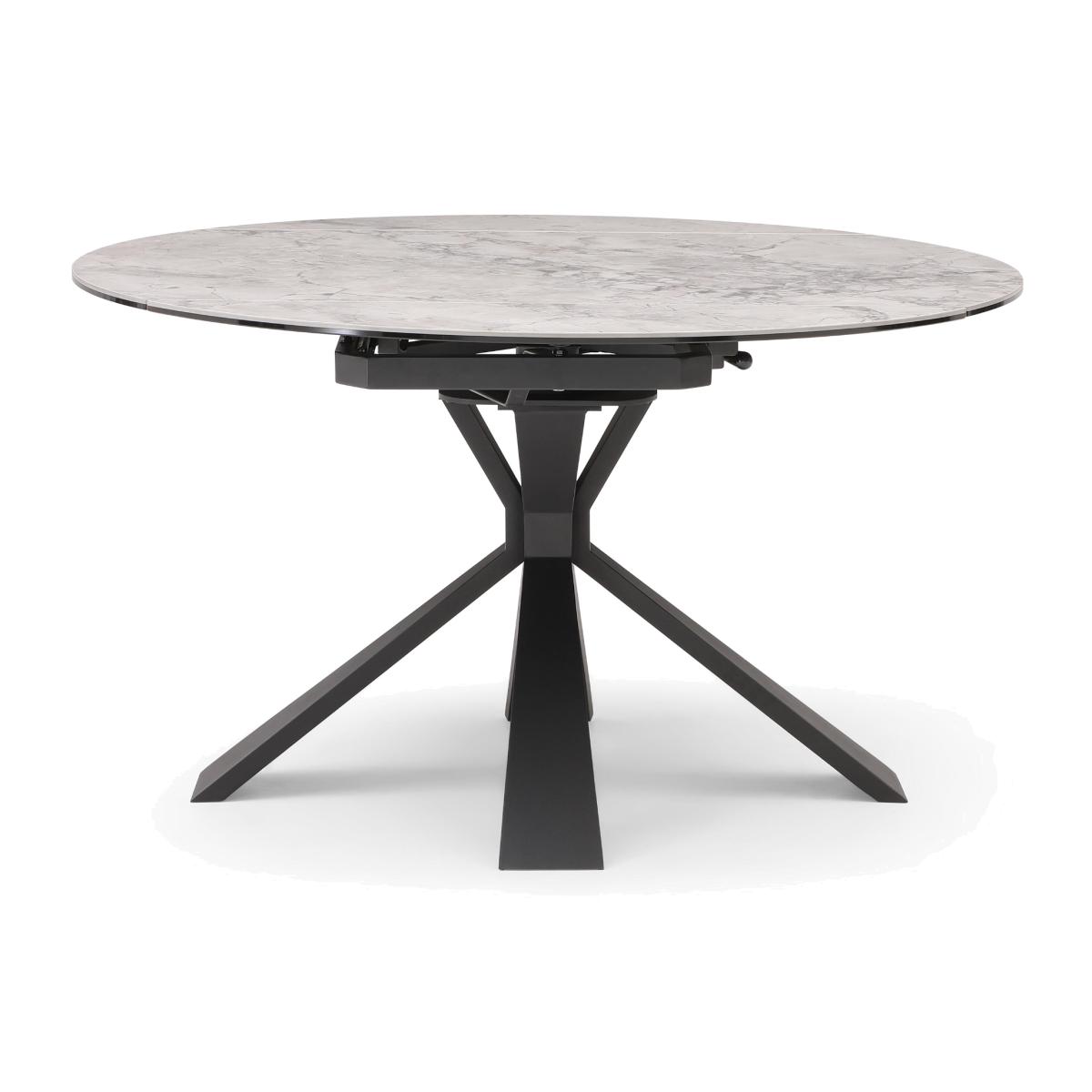 Ready to transform your dining room? Our Crete range makes it easy to give any space that high-end interiors magazine look thanks to its combination of materials and finishes – gorgeous high-gloss white ceramic, matt black powder-coated metal and luxurious velvet upholstery. This carefully curated range comprises a handmade ceramic-topped extending dining table that’s available in two sizes, velvet swivel dining chairs and sideboards. To make life even more effortlessly stylish, we’ve put together some ready-made dining sets featuring the collection’s dining tables and chairs. The Crete range is exclusively available at Furniture Village. This stylish ceramic-topped round table extends with a smooth swivel action to seat up to six. The glossy white finish is incredibly durable. Why you'll love it A bold modern aesthetic with a beautiful and hardwearing finish. This round extending dining table has a stunning high-gloss white ceramic top. Statement base in black powder-coated metal. Ceramic is heatproof and both scratch- and chip-resistant. Designed to be extra durable – the ceramic top is laminated to tempered glass. Easy to use swivel extension mechanism – simply rotate the top to seat 2 more. Made by hand. A Furniture Village exclusive design. This round swivel extending dining table is part of our Crete range. What you need to know Seats 4 closed and 6 when extended. 6 mm ceramic laminated to 8 mm tempered glass. This dining table is very heavy. Please take care when moving it. We recommend using coasters and placemats at all times. Easy to care for. Simply wipe with a clean damp cloth. Transform your dining room with beautiful furniture from our Crete collection. Item code: CRETDT3---001