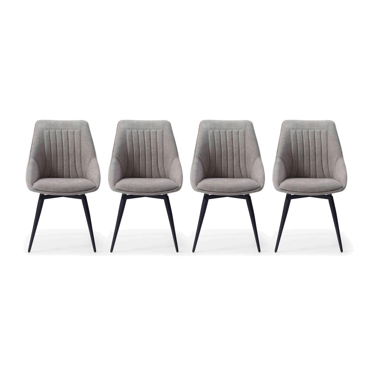 Ready to transform your dining room? Our Crete range makes it easy to give any space that high-end interiors magazine look thanks to its combination of materials and finishes – gorgeous high-gloss white ceramic, matt black powder-coated metal and luxurious velvet upholstery. This carefully curated range comprises a handmade ceramic-topped extending dining table that’s available in two sizes, velvet swivel dining chairs and sideboards. To make life even more effortlessly stylish, we’ve put together some ready-made dining sets featuring the collection’s dining tables and chairs. The Crete range is exclusively available at Furniture Village. Style meets comfort meets ergonomic swivel-base functionality in this set of four dining chairs. In a choice of colours for the velvet upholstery. Why you'll love it Modern, elegant and very comfortable. Chairs have curved backs with fluting. Gorgeous velvet upholstery in a choice of colours. Swivel bases with slender matt black metal legs. Also available in sets of 2 and 6 dining chairs. Made by hand. A Furniture Village exclusive design. This set of 4 swivel dining chairs is part of our Crete range. What you need to know Metal frames and legs. Cushioned with foam. Transform your dining room with beautiful furniture from our Crete collection.