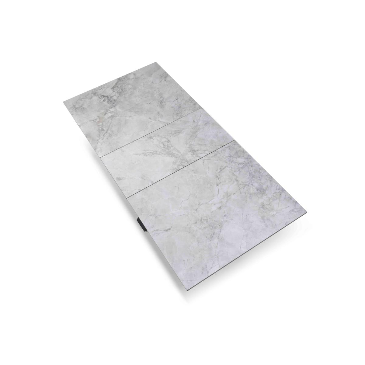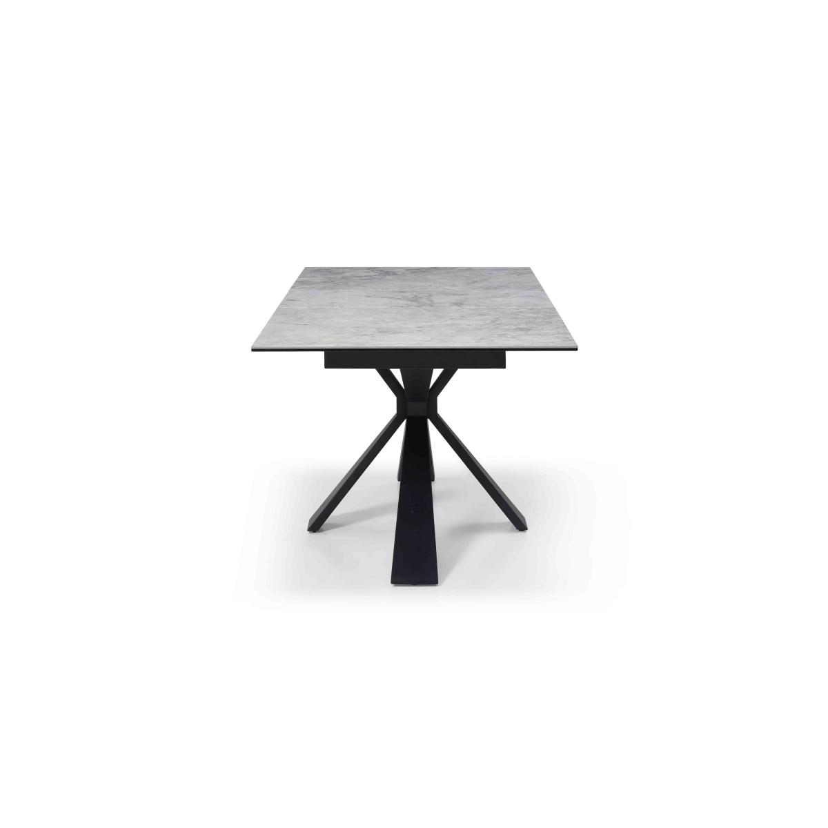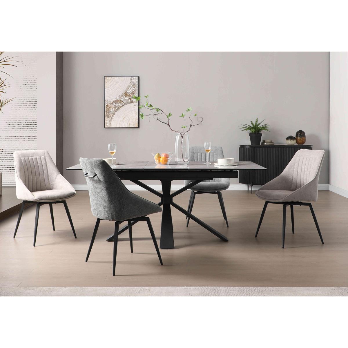 Ready to transform your dining room? Our Crete range makes it easy to give any space that high-end interiors magazine look thanks to its combination of materials and finishes – gorgeous high-gloss white ceramic, matt black powder-coated metal and luxurious velvet upholstery. This carefully curated range comprises a handmade ceramic-topped extending dining table that’s available in two sizes, velvet swivel dining chairs and sideboards. To make life even more effortlessly stylish, we’ve put together some ready-made dining sets featuring the collection’s dining tables and chairs. The Crete range is exclusively available at Furniture Village. Bold and beautiful, this is the ideal dining table for entertaining friends and family. That glossy ceramic top is extremely durable, and it extends to seat eight. Why you'll love it A bold modern aesthetic with a beautiful and hardwearing finish. Stunning high-gloss white ceramic top. Statement base in black powder-coated metal. Ceramic is heatproof and both scratch- and chip-resistant. Designed to be extra durable – the ceramic top is laminated to tempered glass. Pop-up mechanism with extra leaf makes this table so easy to extend. Exceptional quality – the top has flawless continuous ceramic patterning when closed. Made by hand. A Furniture Village exclusive design. This small extending dining table is part of our Crete range. What you need to know Seats 6 closed and 8 when extended. 6 mm ceramic laminated to 8 mm tempered glass. This dining table is very heavy. Please take care when moving it. We recommend using coasters and placemats at all times. Easy to care for. Simply wipe with a clean damp cloth. Transform your dining room with beautiful furniture from our Crete collection.