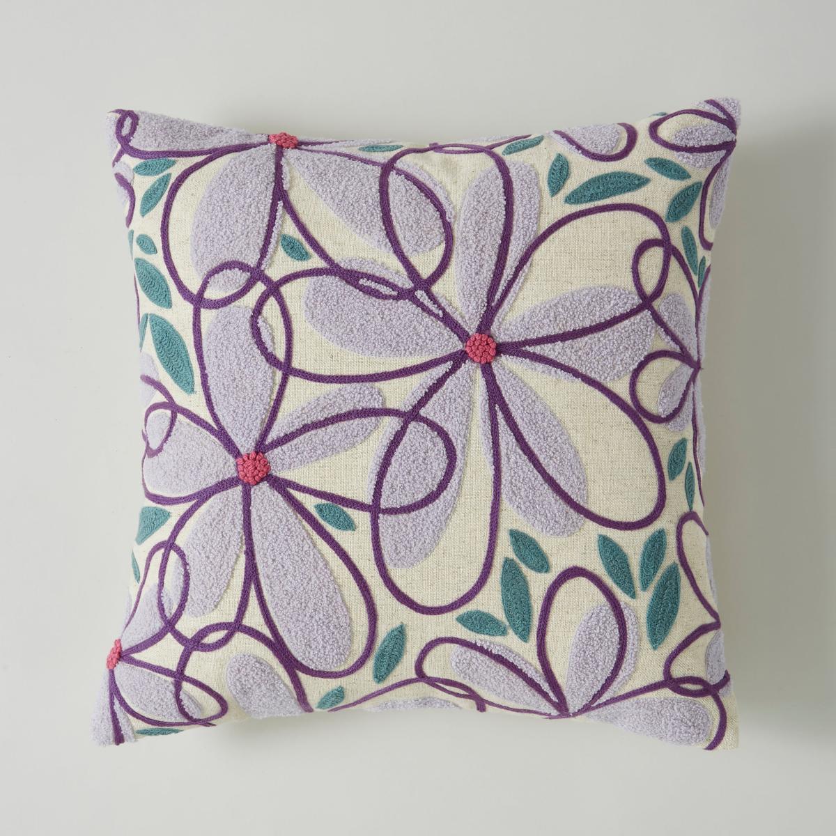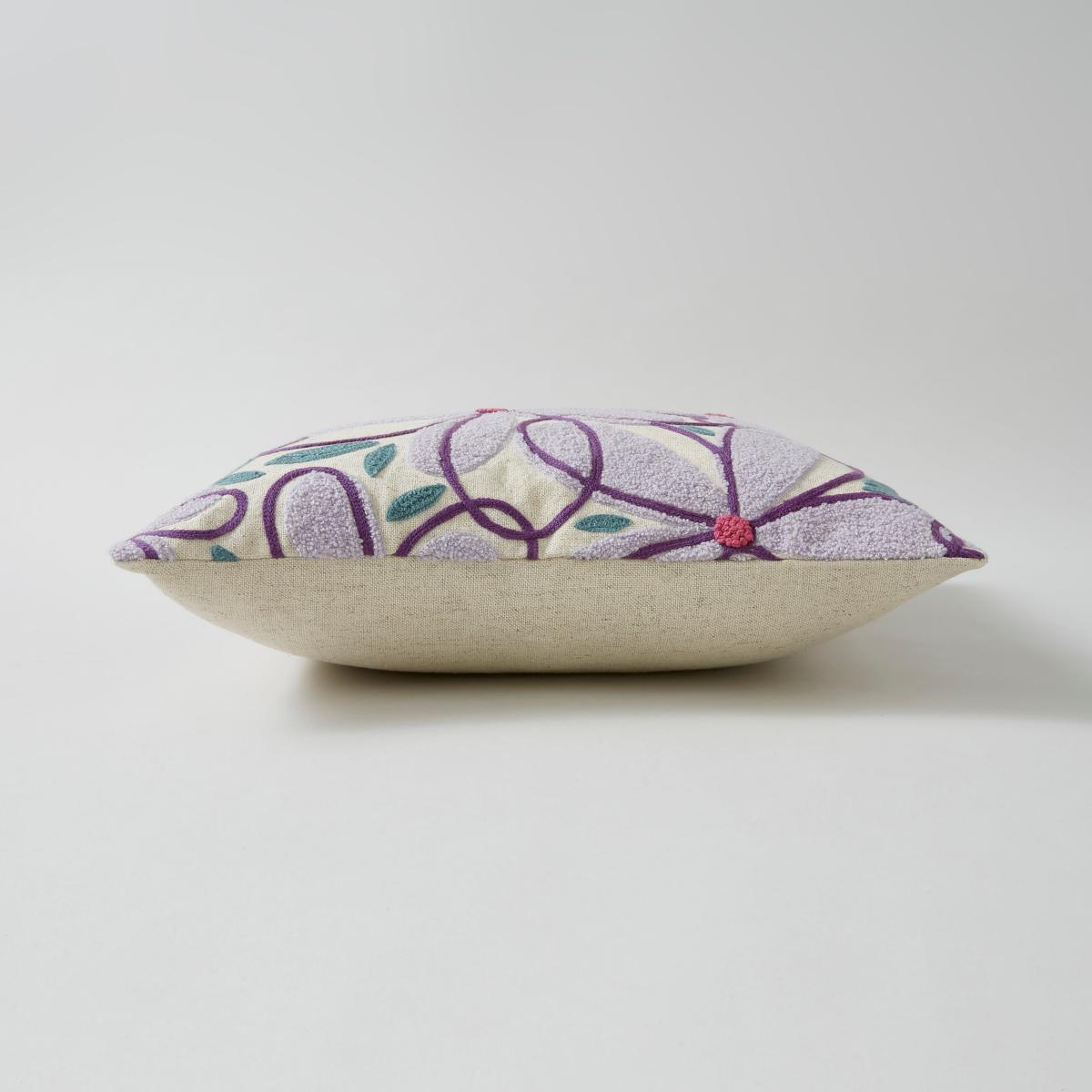 Crewel Work Floral Cushion Lilac