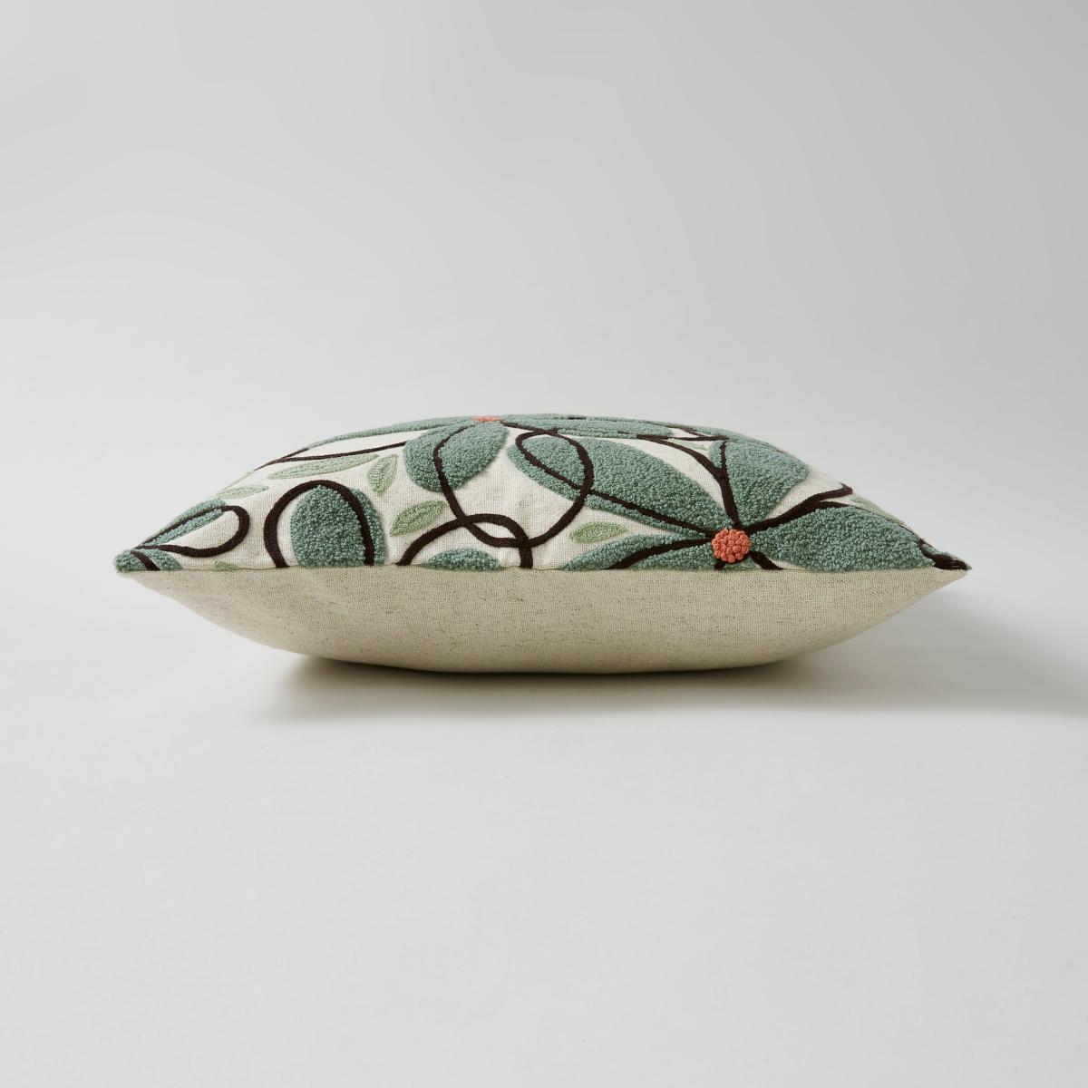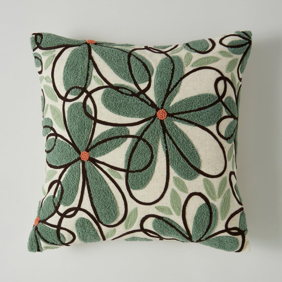 * Hand-crafted* Modern floral embroidery* Plump Filling* Cotton and linen blend Want to add a pop of colour and texture to your living room or bedroom? Look no further than our Crewel Work Floral Cushion! With a stunning combination of traditional crewel embroidery and contemporary designs in a calming shade of sage, this cushion is the perfect accent piece. Made with a comfortable plump filling and a blend of cotton and linen, it's also easy to clean thanks to its removable cover.