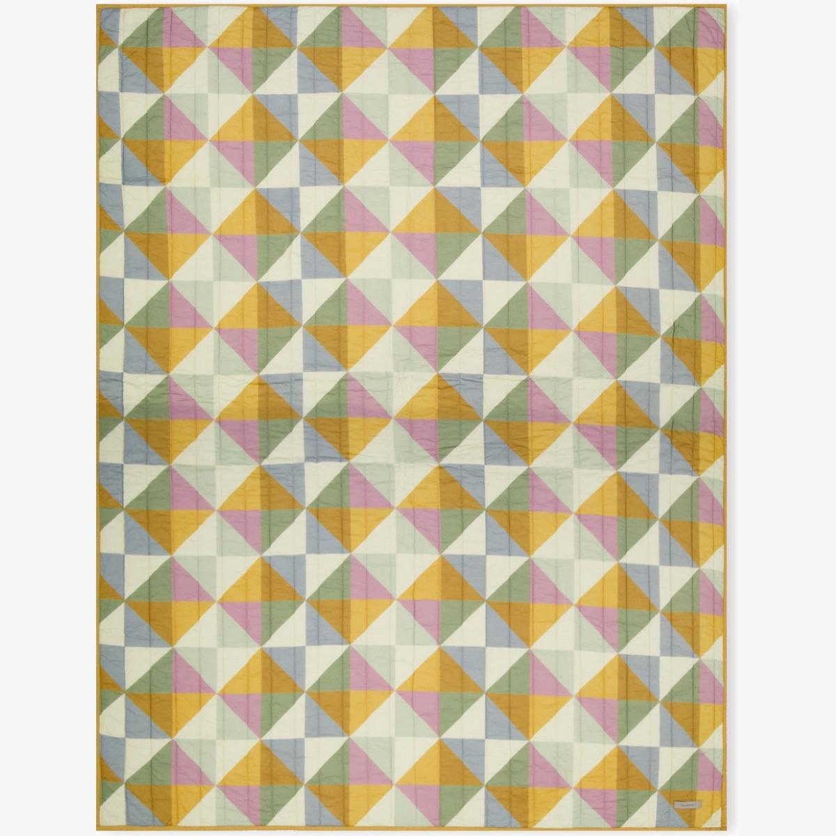 I love this throw for its vibrant geometric pattern, which can really lift a neutral sofa or bedspread with a splash of colour. It works particularly well in contemporary or Scandinavian-inspired interiors where clean lines and bold patterns are key. To style it, try draping it casually over the corner of a bed for a cosy yet stylish layered look, or fold it neatly at the foot of a sofa to add visual interest. Practical tip: pair it with simple cushions in complementary hues to create a cohesive and inviting space, making this throw a versatile accessory that adds personality without overwhelming the room.