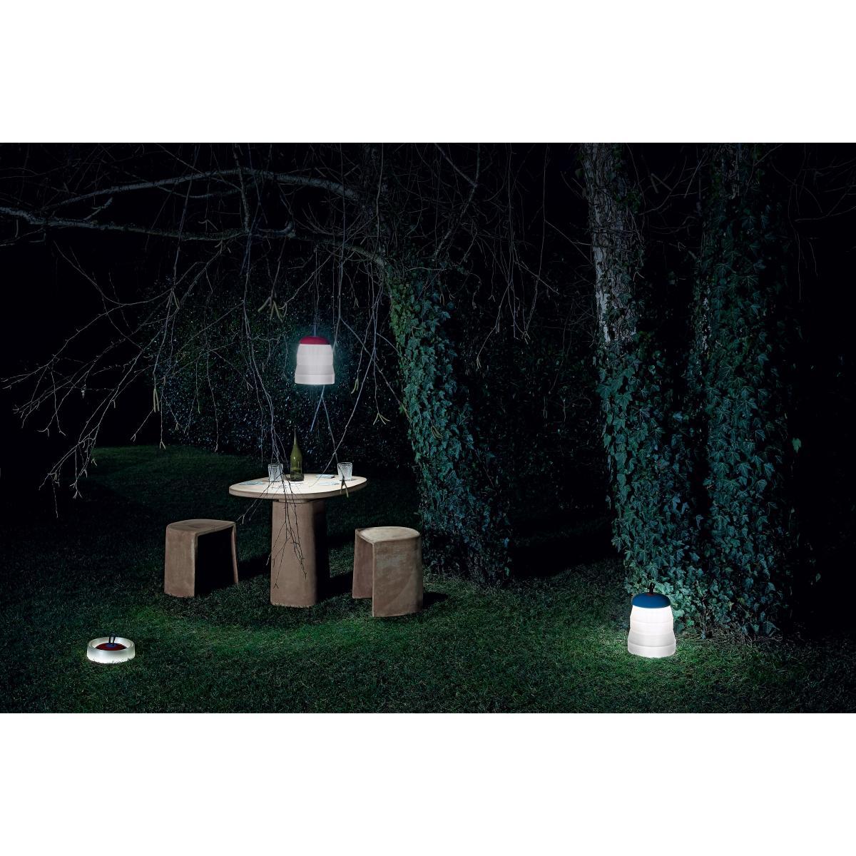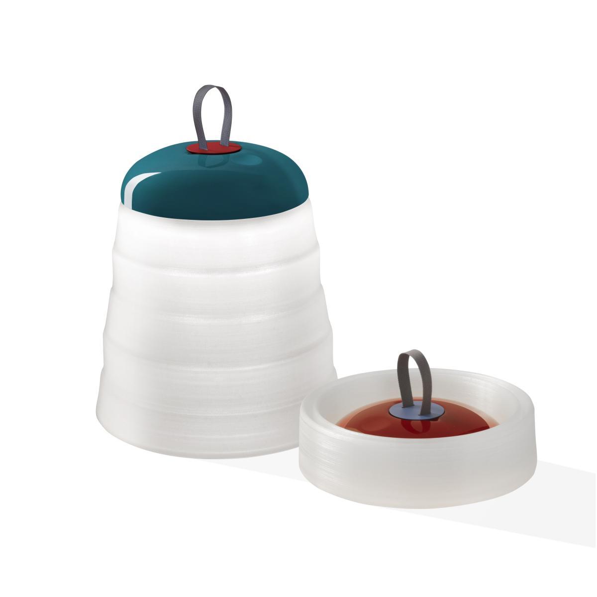 Relaxed lighting. Cheerful and casual, the Cri Cri wireless lamp is the perfect partner for your summer evenings. Suitable for outdoor use, it is a real go-anywhere product which can be moved around as you like, from the house to the garden, from the beach to the campsite. It can become an ambient light in your living room or entrance, and is ideal as a night light in a child’s bedroom (it does not heat up). Lightweight and equipped with an ABS plastic handle, it is easy to hang or carry around, so you can take it with you anywhere! Its diffuser is made of soft silicone. Like a lantern, Cri Cri folds up and unfolds as you wish: open or half-open, with three light intensities (with touch dimmer), it lets you create a range of light atmospheres to suit your mood. Completely folded away, it’s compact and discreet (H 10 cm) for easy storage with a very small footprint. Highly convenient, Cri Cri can be charged on a simple USB port.