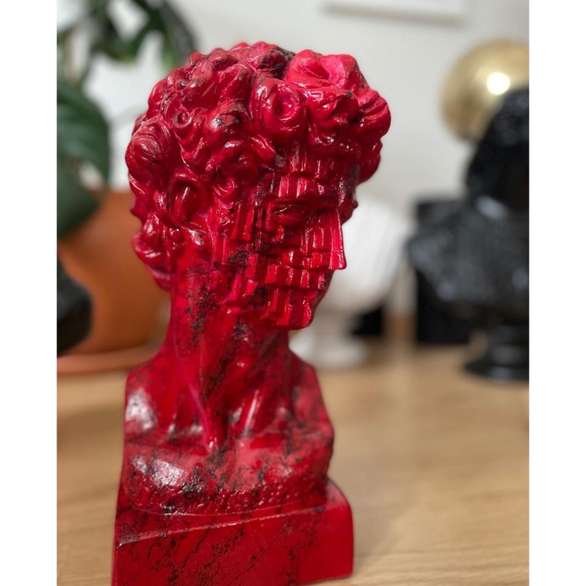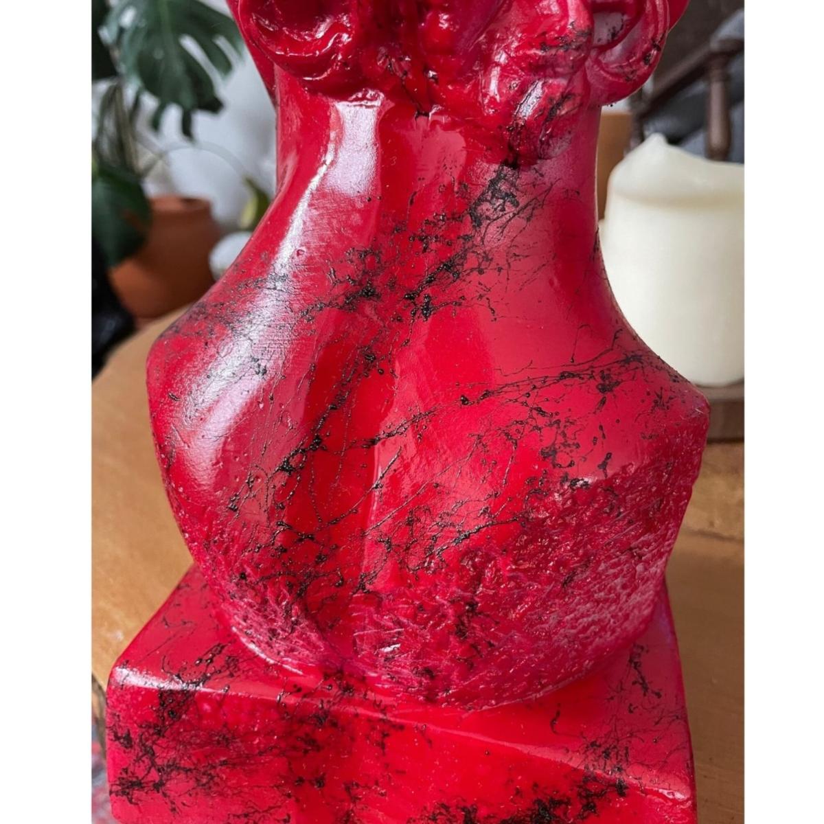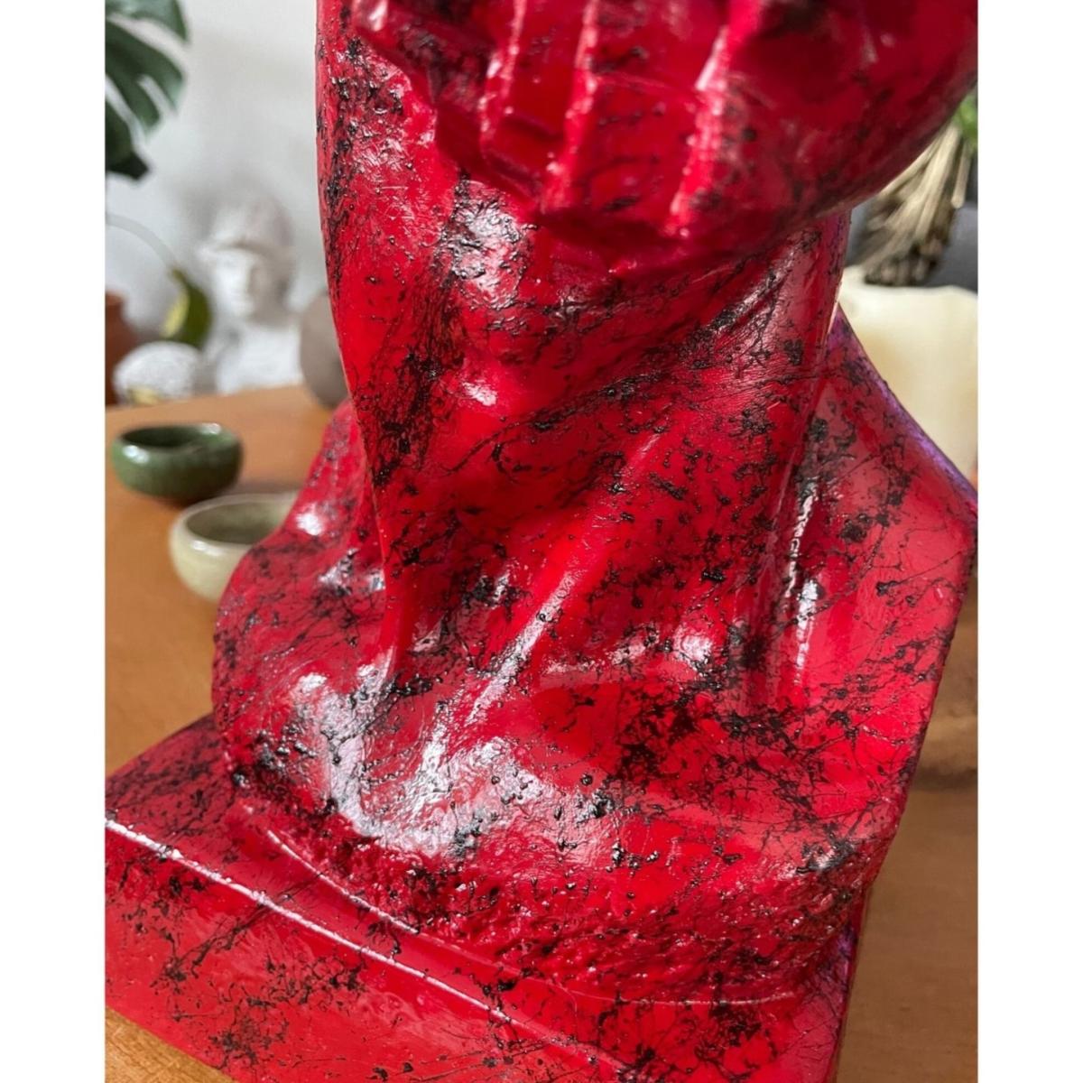 "Crimson Mosaic" is a striking 34 x 20 cm sculpture that reinterprets the classical bust with a modern, fragmented twist. Painted in a vivid red hue with intricate mosaic-like detailing, this sculpture commands attention in any space. The bold color combined with the unique texture offers a contemporary edge, making it a perfect statement piece for those who appreciate art that challenges traditional boundaries. Crafted with precision, "Crimson Mosaic" is more than just decor; it’s a conversation starter, embodying both the strength and complexity of the human form in a captivatingly bold aesthetic.