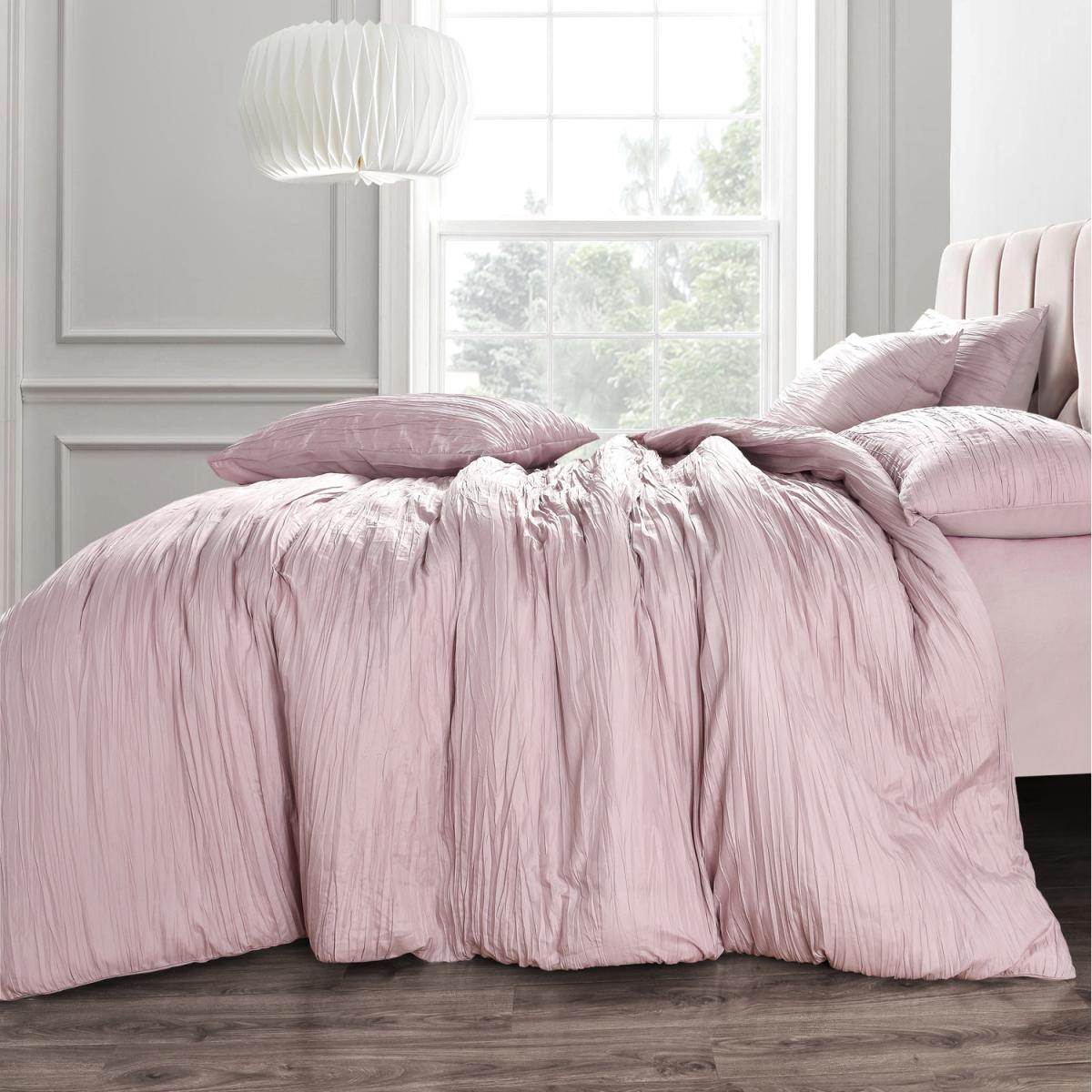 Crinkle Pleat Soft Touch Duvet Set - Pink / 2 Pillowcases / 1.2kg