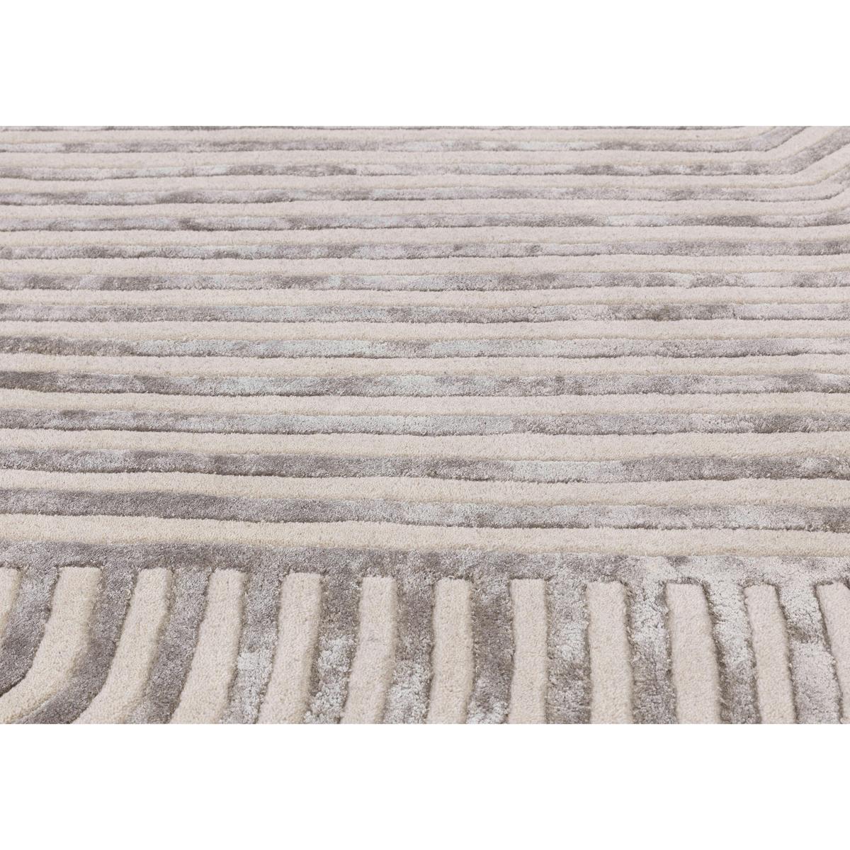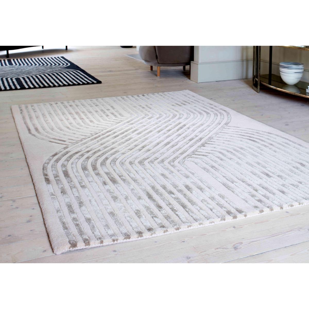 Make a bold statement and add a touch of contemporary glam style to your home with our beautiful wool-rich Crispin rug. In a choice of colourways and sizes. Why you'll love it Contemporary wool-rich rug makes a striking centrepiece. Geometric two-colour design. Carefully carved lines for a visually interesting high-low textured pile. Hand tufted. In a choice of stylish colourways and practical sizes. Wool and viscose combination for family-friendly durability. Only available online. This rug is part of the Furniture Village home accessories collection. What you need to know 55% wool, 45% viscose. 10 mm to 12 mm pile. For indoor use only. Clean regularly using a suction vacuum cleaner. Do not use a rotating brush vacuum cleaner. Blot stains; do not rub.