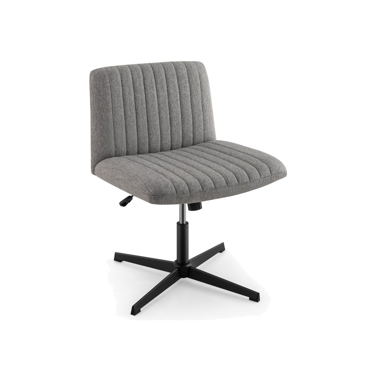 I love the channelled upholstery and slim four-star base of this cross-leg chair - it feels contemporary without being fussy. The neutral grey fabric sits comfortably in Scandi, industrial or mid-century schemes. For styling, pair it with a light wood or glass-top desk to keep a room feeling open, or use two around a compact dining table. A simple textured cushion in soft pink or forest green adds colour without overwhelming, while the swivel and height-adjustment make it a versatile pick for home offices and vanity corners alike.