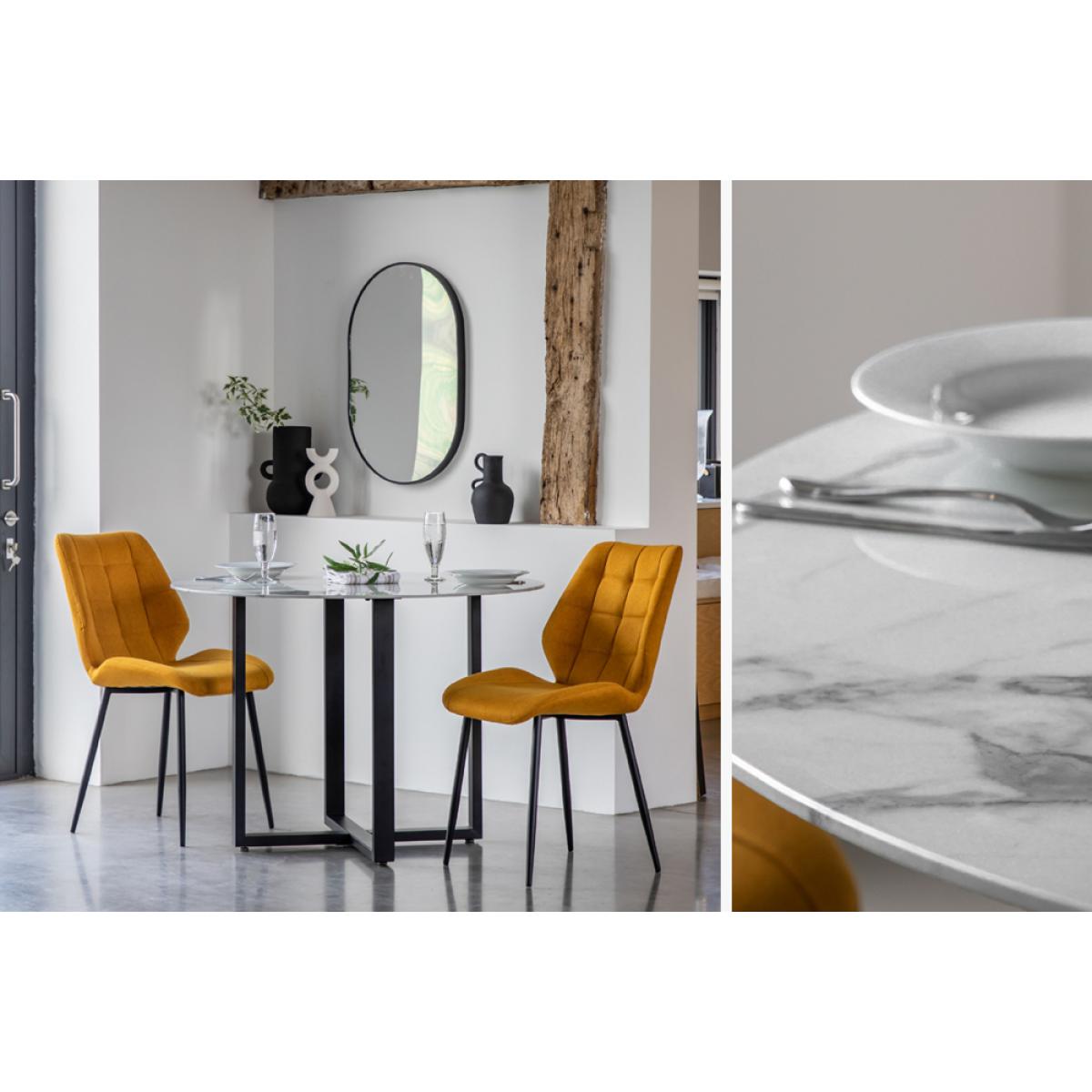 The black marble top makes this a bold choice for a dining space, bringing a sophisticated and modern touch. I love it because it’s versatile enough to work well in both minimalist interiors and more eclectic, luxe settings. Pairing it with sleek, contemporary chairs keeps the look fresh, while adding textures like soft upholstery or metallic accents can soften the overall aesthetic. For styling tips, consider keeping the table clear with minimal centrepieces to highlight the beautiful marble surface, or add a pop of colour with placemats and smaller details. It’s perfect for a modern apartment or a high-end open-plan dining area where statement pieces are key.