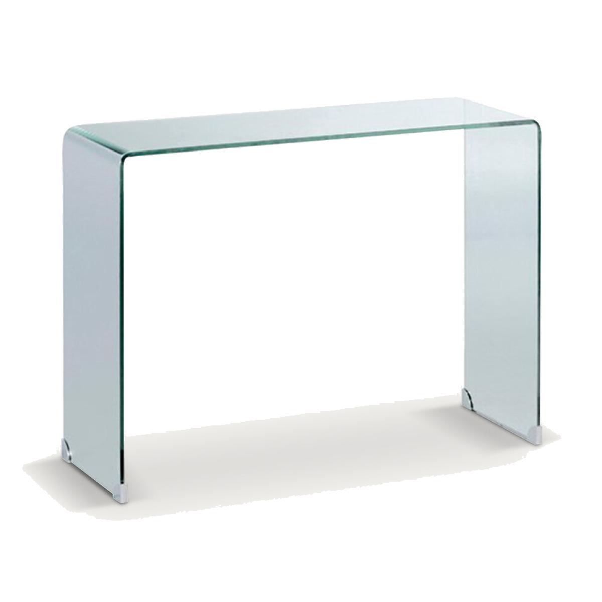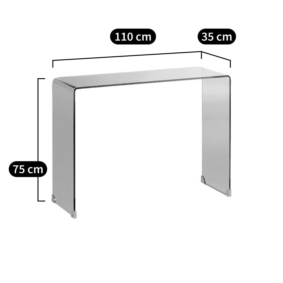 Cristalline console table. Pure lines for a light and very contemporary feel. Slimline, this tempered glass console table will fit perfectly in a hallway or bedroom. Product Details • In transparent tempered glass (12mm thick) • 4 aluminium pieces (removable) to protect the base • Supports a maximum weight of 40kg. Dimensions • L110 x H75 x D35cm. Delivery: • This product will be delivered to your home.
