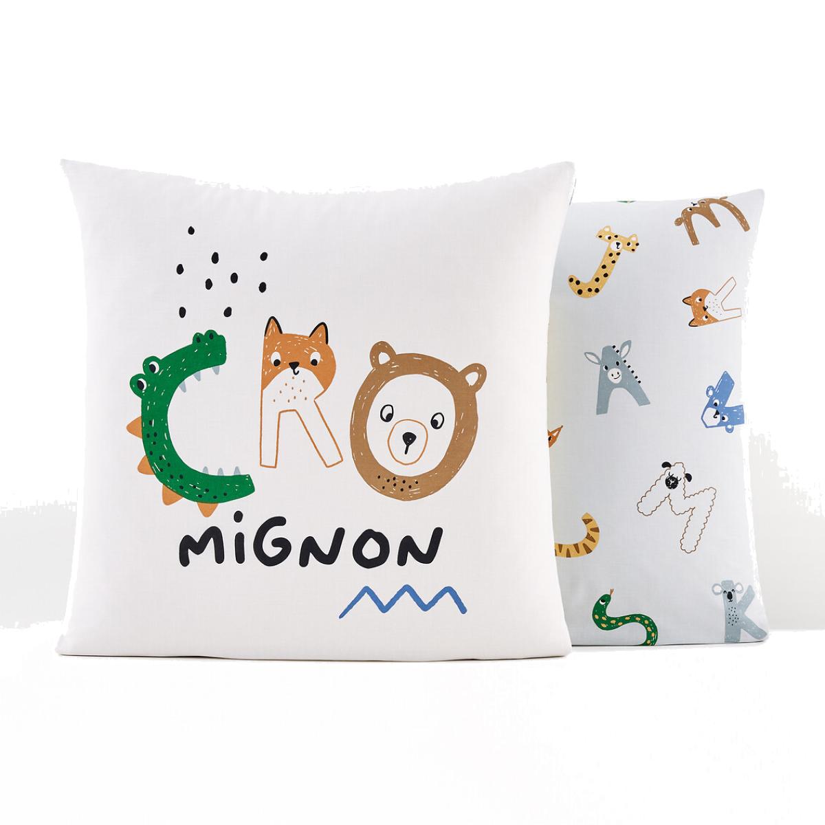 Playful, joyful and colourful, the Cro Mignon bed linen features an alphabet book illustrated with animals. A fun pattern that will delight children. A design exclusive to La Redoute Interiors. Cotton is part of our daily lives. We love it for its suppleness and softness. Easy Care, it is ideal for the beds of young and old alike!Product Details • 100% cotton • 144 thread count • Front printed "Cro mignon", back printed alphabet Match this item with the rest of the bedding in the range for a stylish bedroom. And you can mix and match it with different colours and styles from our other bedding ranges when you want to change things up and create your own unique look. Care Advice • Machine washable at 60°C • By washing your laundry at 40°C instead of 60°C, you limit energy consumption. Size • 63 x 63cm: Square pillowcase • OEKO-TEX® Standard 100. Standard 100 certification by OEKO-TEX® tests textile products for harmful substances via an independent, international label.