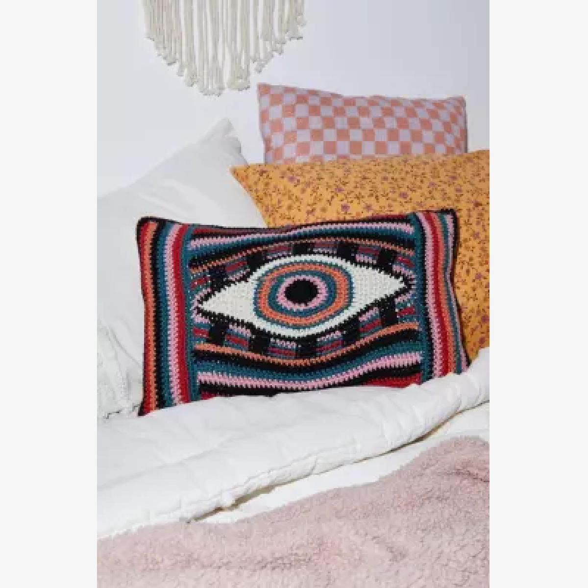 Keep one eye on your space with this all-knowing throw pillow. Featuring a crochet construction that's handmade, the rectangular pillow offers a supportive and decorative element for your armchair, sofa or bed. Each pillow may vary slightly from what’s pictured here. **Content + Care** \- 100% Cotton; 100% Polyester fill \- Spot clean **Size** \- L: 35.5cm x W: 50.8cm