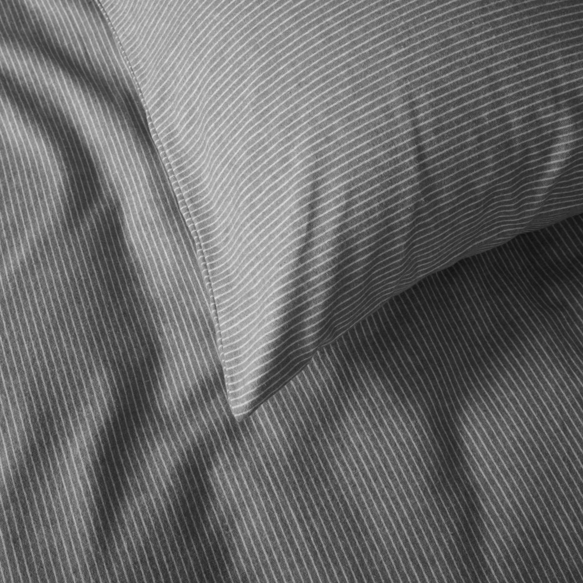 Cosy and sophisticated, our Euan bedding is made from a super soft brushed cotton to provide warmth and softness for the cooler autumn and winter months. Subtle stripes offer a grown-up aesthetic which makes for a versatile base for additional decorative accessories. Croft Collection is beautiful and considered. Neutral in palette, tactile by nature, it evokes a relaxed feel you'll love to come home to forever. Please note: Duvet covers and pillowcases are available to purchase separately, and not in sets. Have you thought about sheeting? Shop here. Bedding size To fit duvet/pillow size (cm) Standard pillowcase L75 x W50cm Single duvet cover L200 x W135cm Double duvet cover L200 x W200cm King duvet cover L220 x W225cm Super king duvet cover L220 x W260 cm