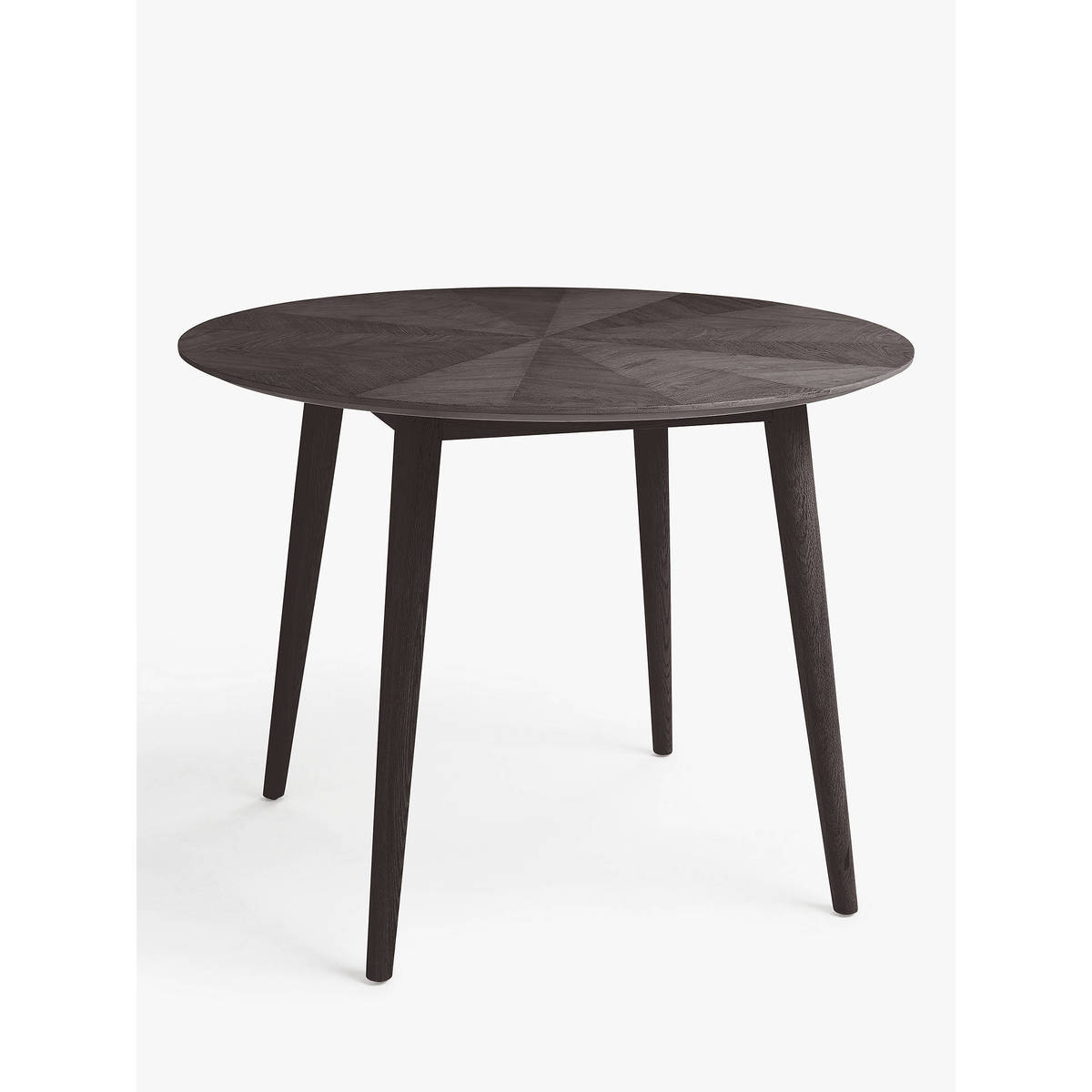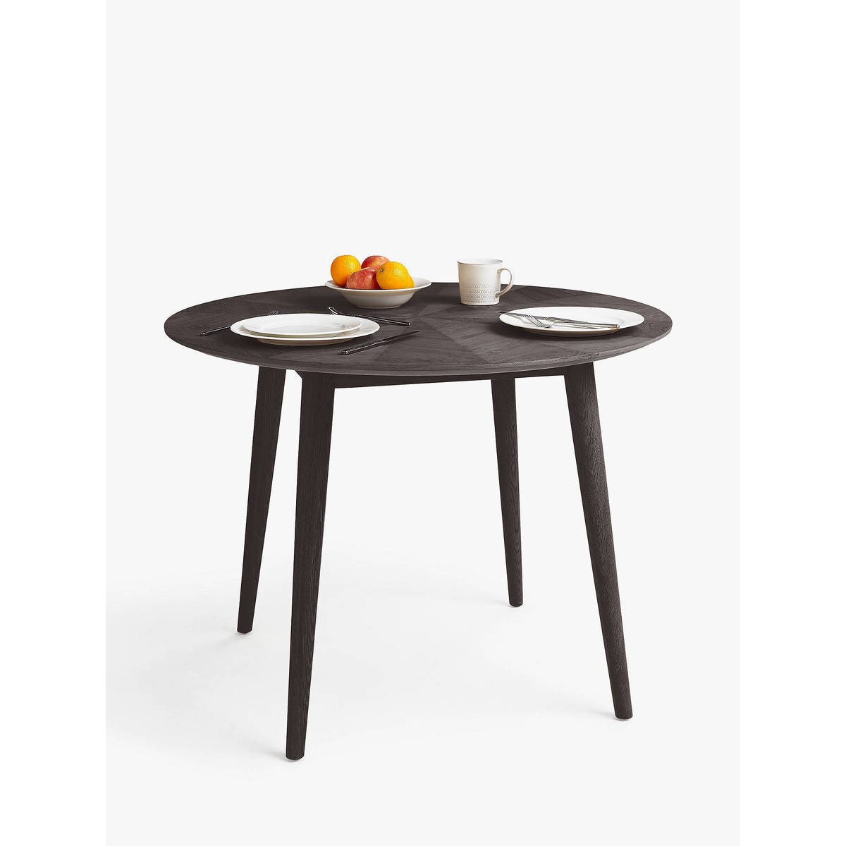 Part of our Croft Collection, the Iona range is crafted from European Oak and Rustic Oak structured veneers. Each considered piece highlights the natural beauty of the grain and knots, showcased throughout a delicate inlay chevron design. Finished in a specialist matt lacquer and brushed out grain to keep the wood looking natural and dry, this range offers a timeless and functional accent to your home.;This round dining table offers seating for up to 4 diners. Its classic design features subtly splayed, rounded legs that offer a supportive and sturdy base.;Croft Collection is beautiful and considered. Neutral in palette, tactile by nature, it evokes a relaxed feel you’ll love to come home to forever.