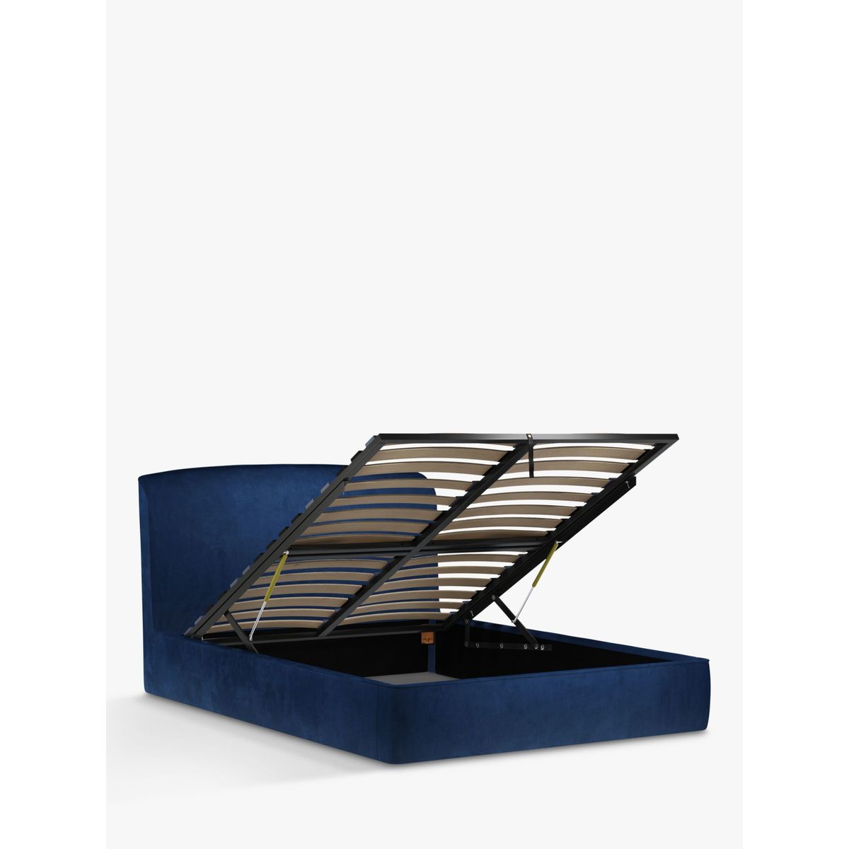 The Skye ottoman storage bed frame is designed with gently curved edges and a wide headboard. Its handle and hydraulic arms facilitate an easy manual lift-up, and reveals a functional and spacious storage space for linens. Sprung slats provide additional support for you and your mattress. Smart Slats This bed frame is designed with wider slats at the shoulders, lumbar and feet, that provide maximum support for your mattress so that you experience perfect spinal alignment while you sleep. Standard slat caps are black so we have added grey slat caps to ensure that you know where to place the wider slats.