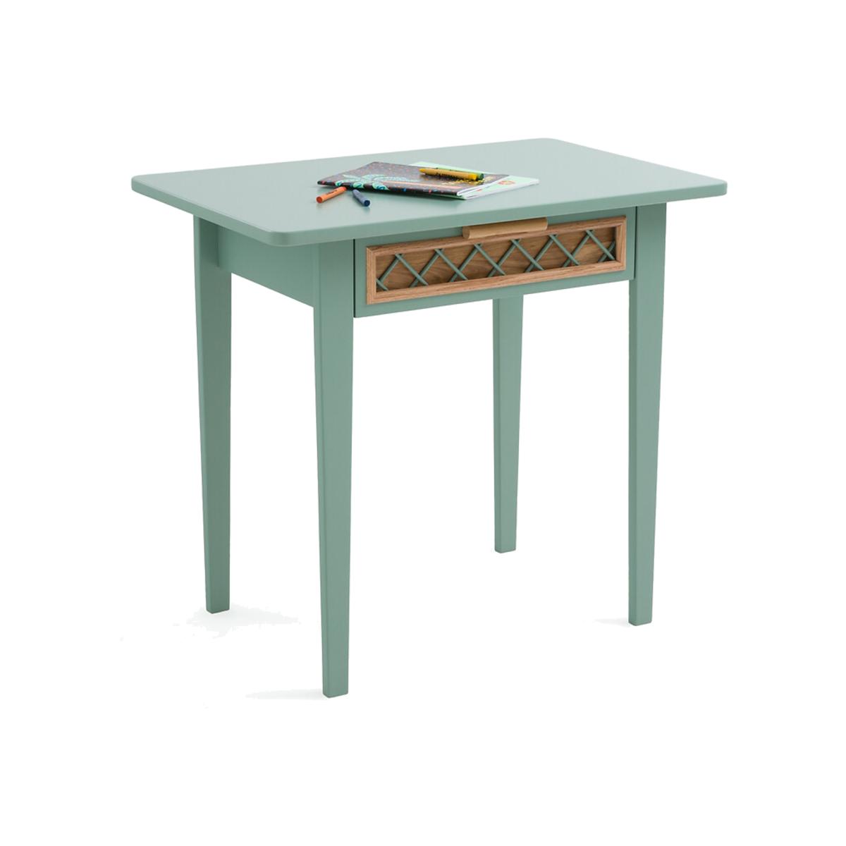 I love this little desk for its charming vintage vibe and practical design, perfect for a child’s study corner. Its soft, muted colour makes it easy to incorporate into both traditional and contemporary children's spaces. The drawer with a woven detail adds a touch of visual interest, while offering handy storage for art supplies or stationery. It's ideal for small, cosy nooks or tucked into a corner of a playful bedroom. Styling tip: pair it with a colourful or patterned chair to bring personality, and keep the surface simple with only a few essentials to encourage organised study sessions. This piece works particularly well in interiors that embrace a mix of soft pastels or a retro-inspired aesthetic.