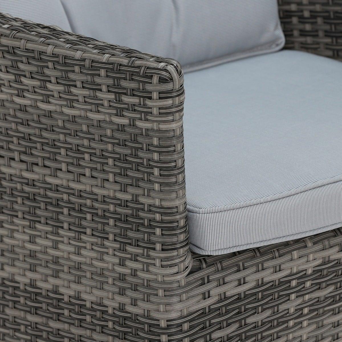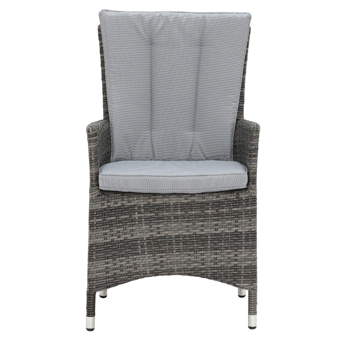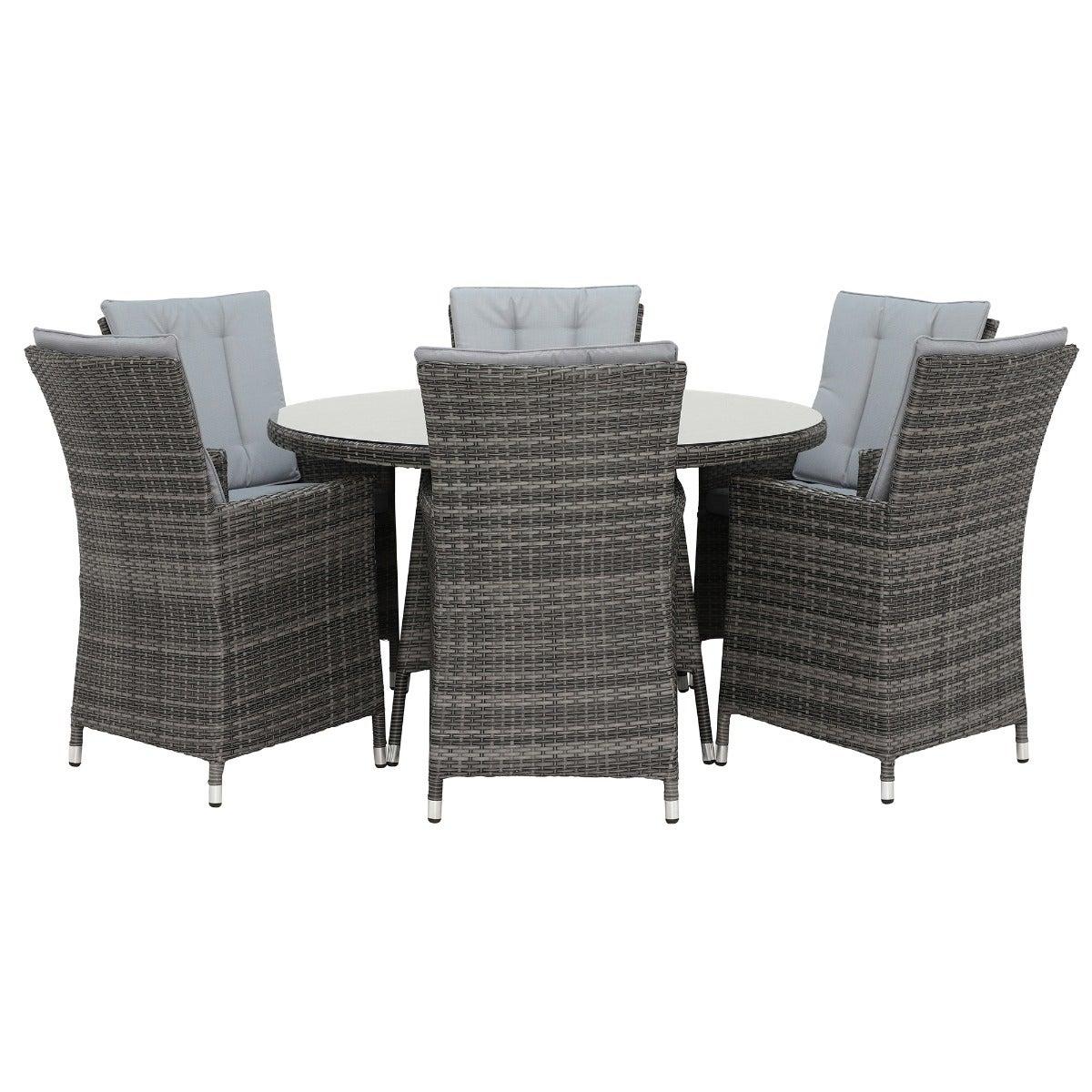 Design. Bring modern elegance to you. R. Outdoor space with the Cromer Garden Dining Set. A round dining table and 6 chairs boast a luxurious. Flat. Rattan weave. ,. Here available. In a trendy grey. To suit all garden décor. The deep-filled cushions offer sumptuous comfort. , ideal. For. Loung. Ing. In the sun. Or. Chatting to family and friends for hours. The dining table is topped with tempered glass for a durable. Finish, and. Features a. Parasol hole for when the sun gets a little too hot and you need some shade. Cromer is a dining set made to last with appropriate. Care, and. Will take your alfresco dining to the next level.