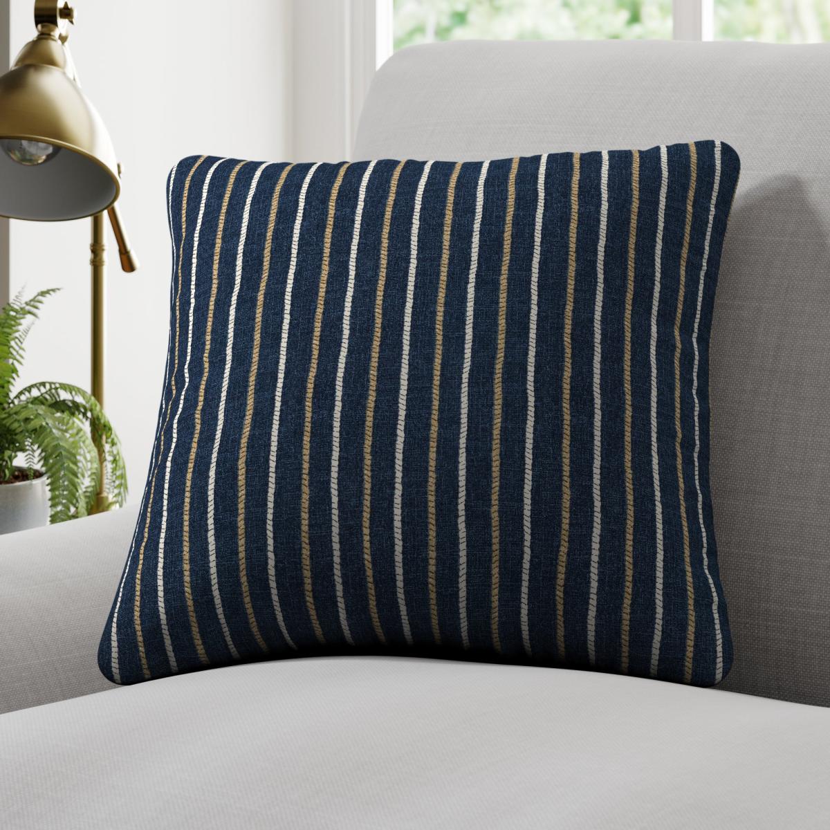 Treat yourself to this Cromer Stripe Made to Order Cushion Cover offers you a timeless striped design for your home. Sold individually, with the filling available to purchase separately. Choose between a classic plain or an elegant piped edge to suit your finishing taste. The timeless design is bound to add an elegant look to your home, while the use of high quality 100% cotton ensures both durability and a luxurious feel. Why not shop the coordinating Cromer Stripe Made to Measure and Made to Order items available to purchase separately, for a complete look? Our Web Exclusive Coastal range features a variety of unique designs, across curtains, tiebacks, cushion covers and more, all made on a 100% cotton fabric base. The 100% natural fibres like cotton are kinder to the environment, as well as to our skin, being naturally hypoallergenic, meaning they are ideal for sensitive and allergy-prone skin, as well as having unique anti-bacterial qualities. You can feel confident that our Coastal range will be gentle to the environment, and to those who may sit close.