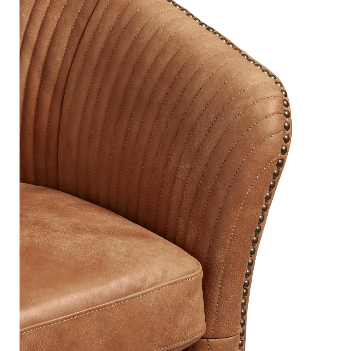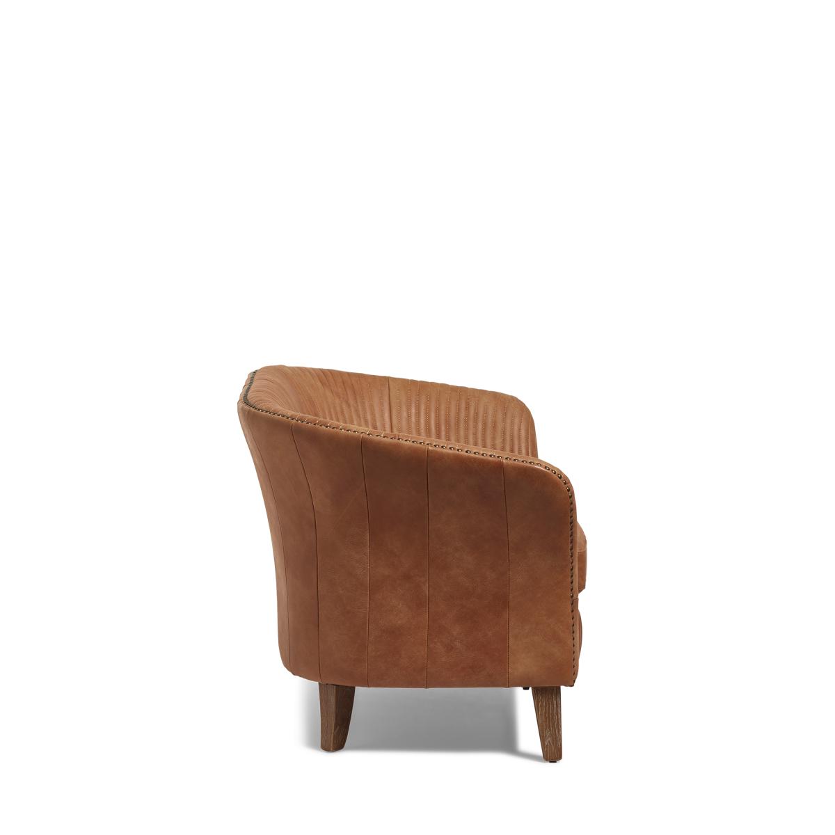 Our Crosby design originally debuted as an armchair, brimming with 1940s appeal. Taking its name from Bing Crosby – the famed American multimedia star – this 2-Seater Sofa is the perfect way to add a little classic charm to your scheme. The smooth Hazelnut Brown leather has a pleasing matt finish and is complemented beautifully with polished studs. Factor in the seashell-like back of this sofa, and you have yourself a real statement piece.