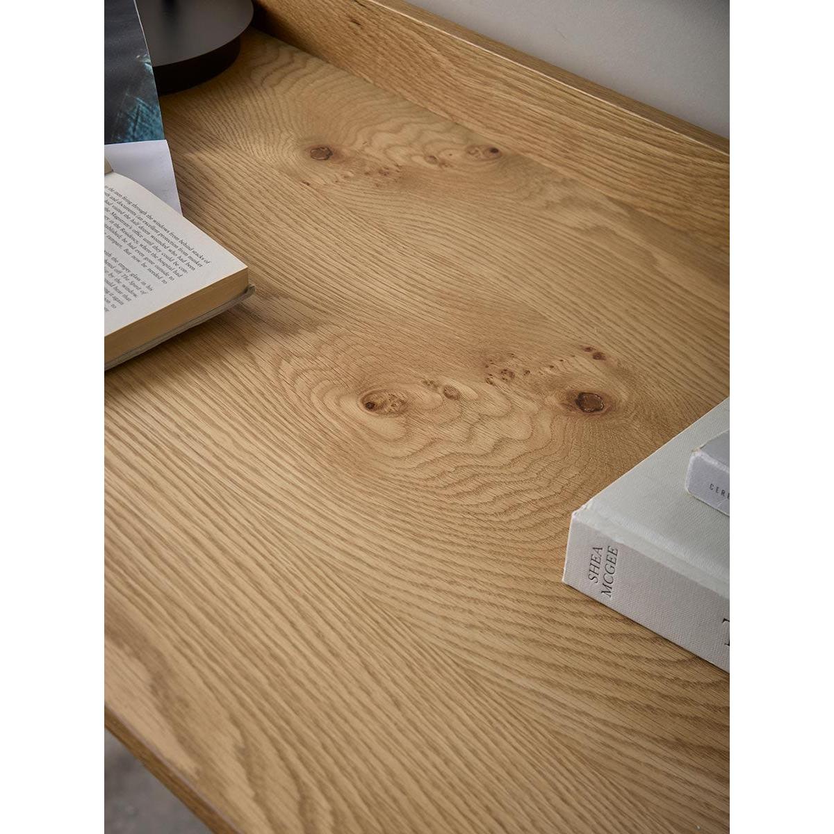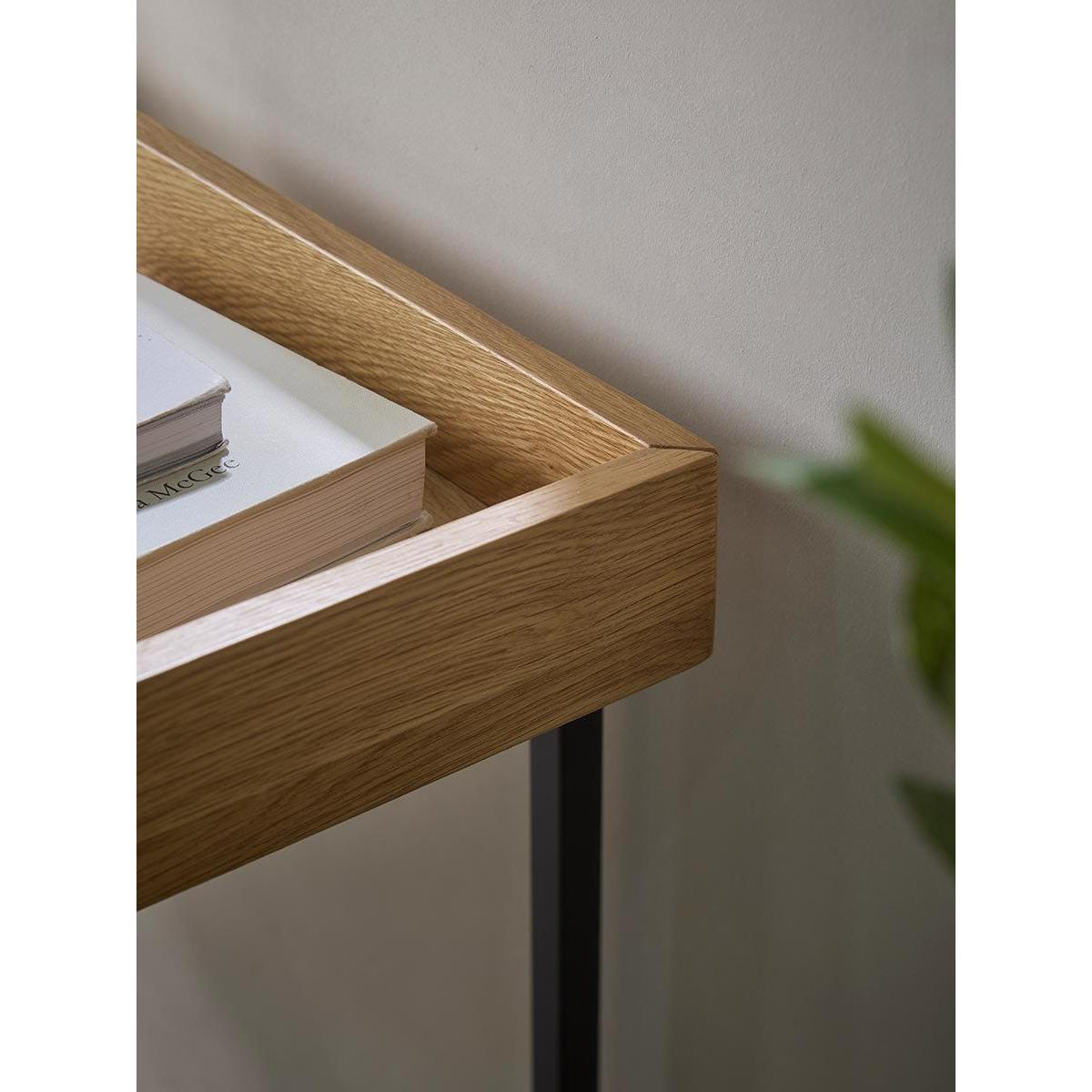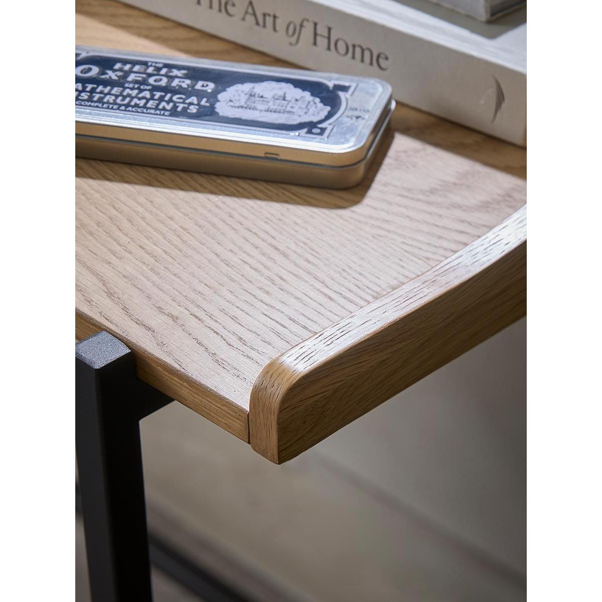 With a sturdy industrial frame crafted from iron, this desk offers a blend of modern design and farmhouse elements - the perfect addition to our Industrial trend. Finished with an oak veneer tabletop, the curved sides and back lip offer gentle framing and prevent books and wires from falling off.
