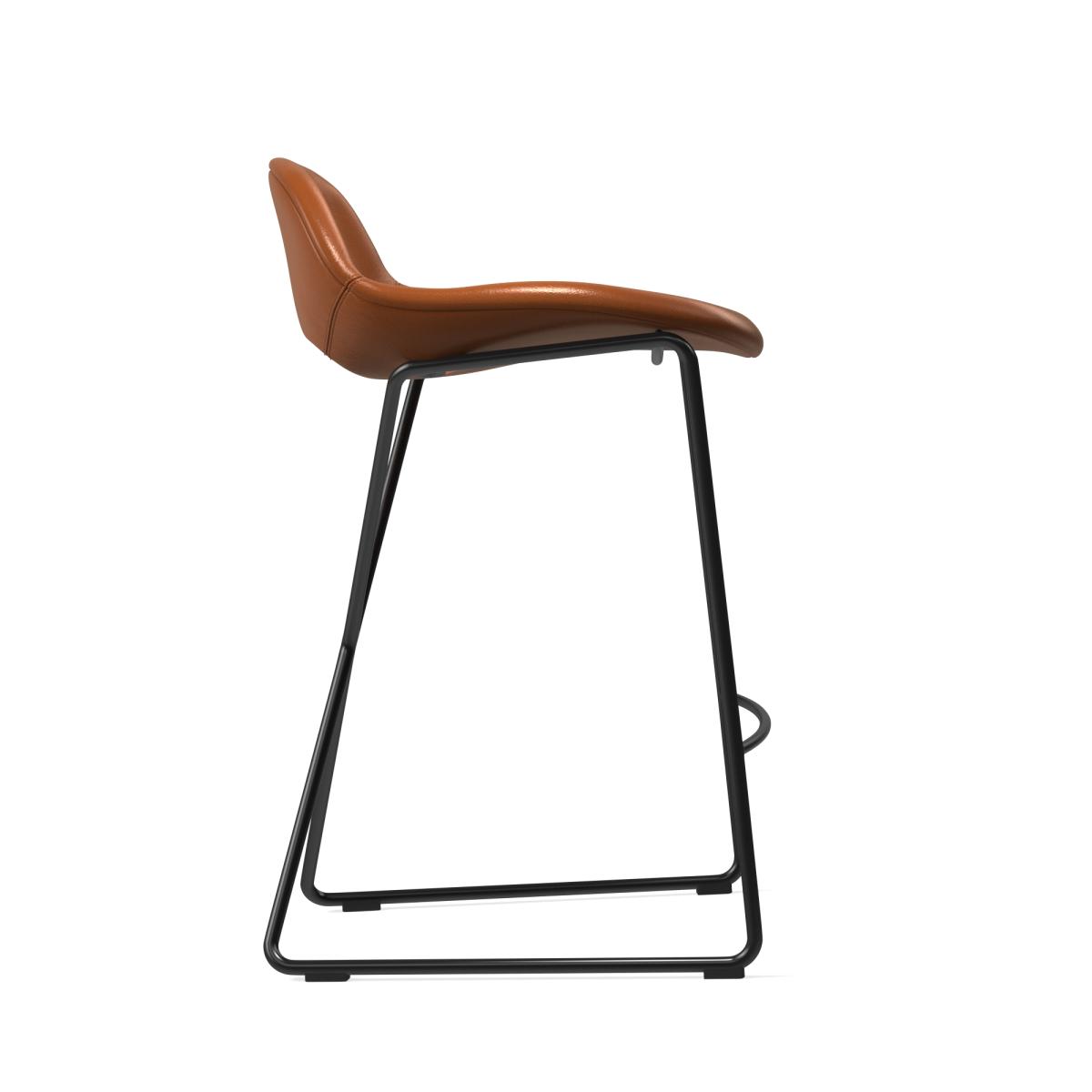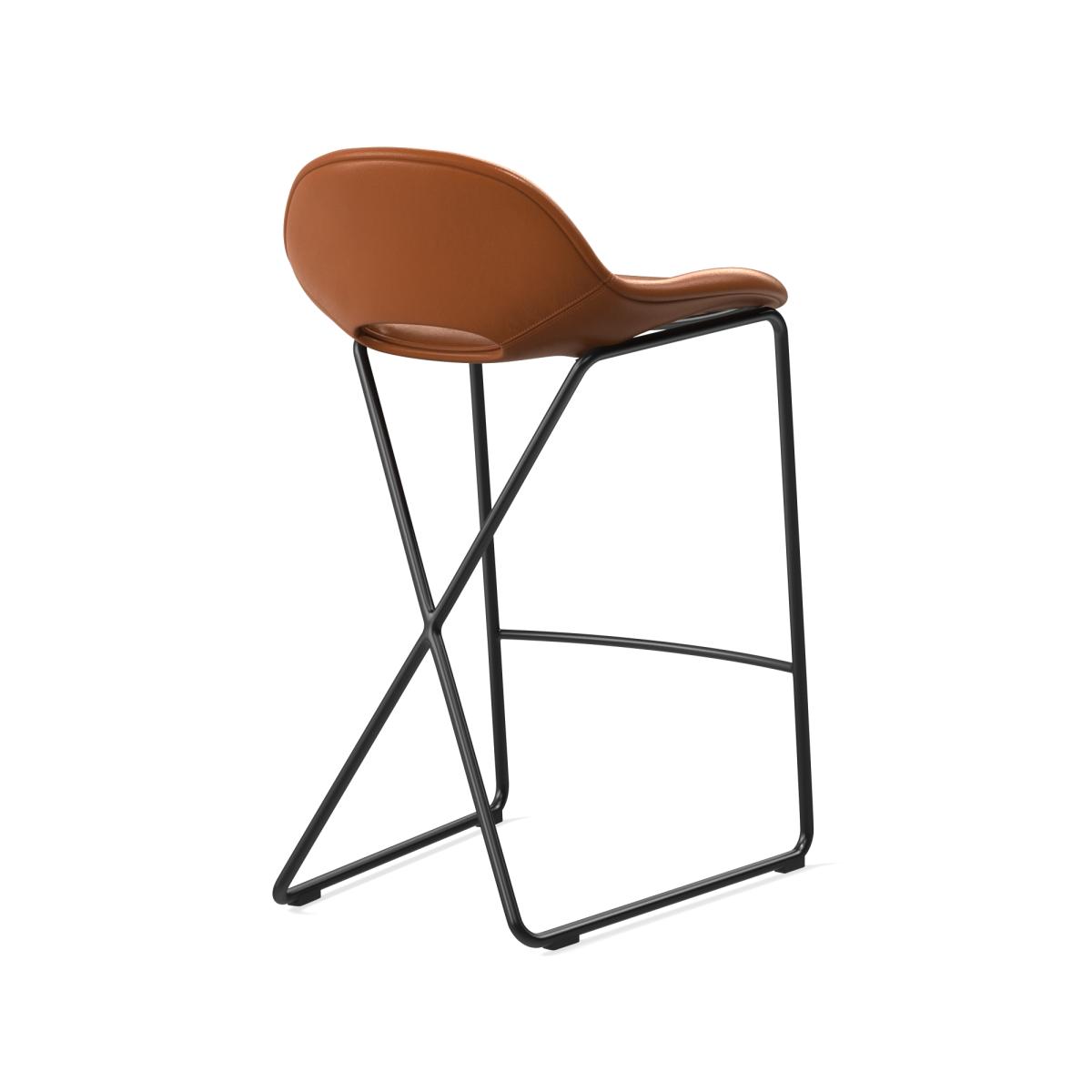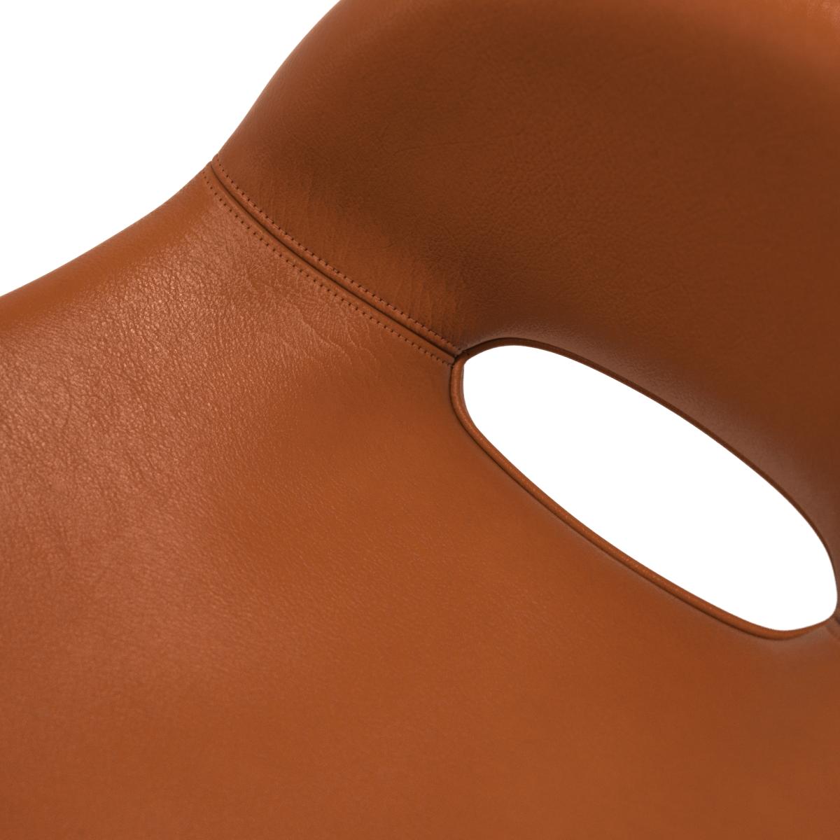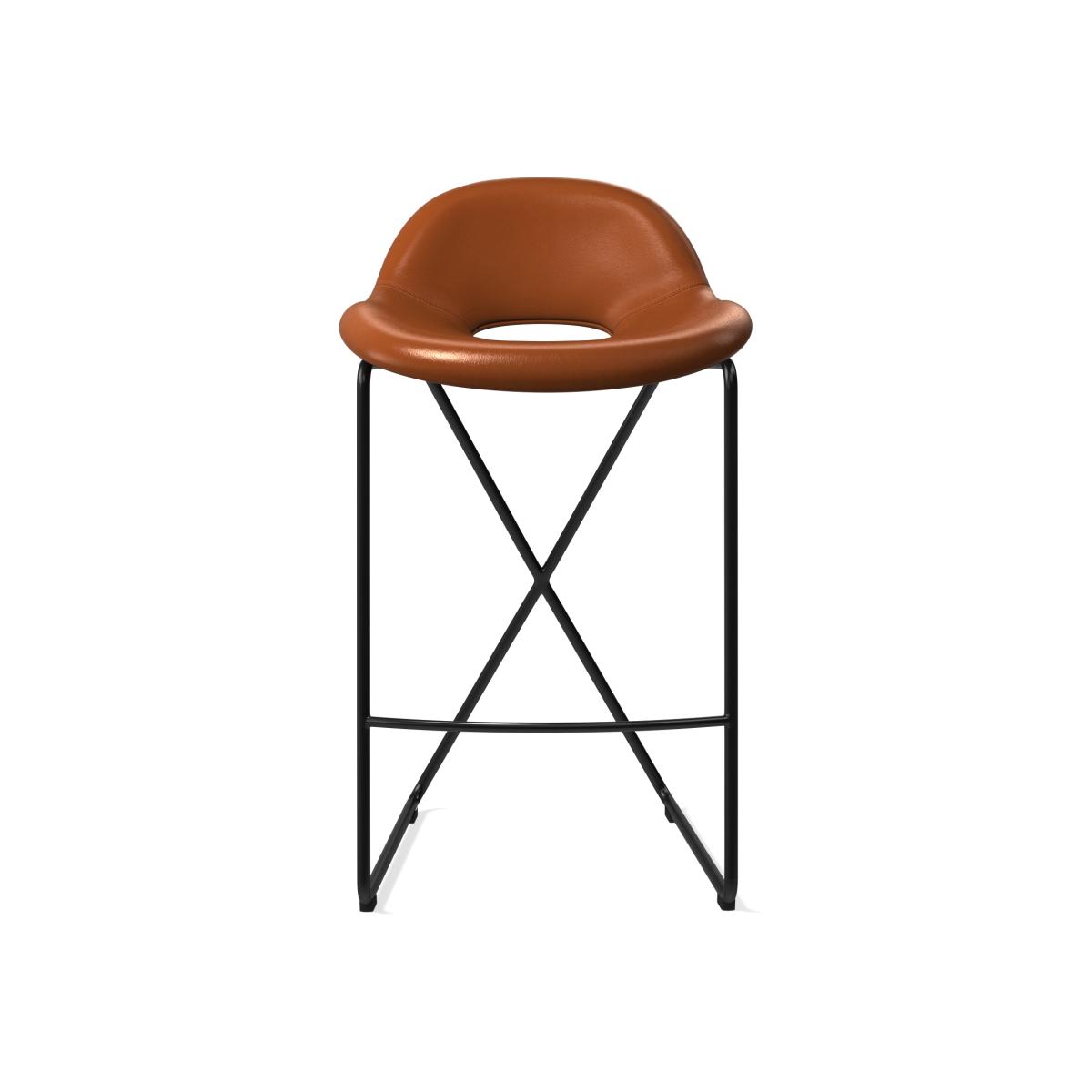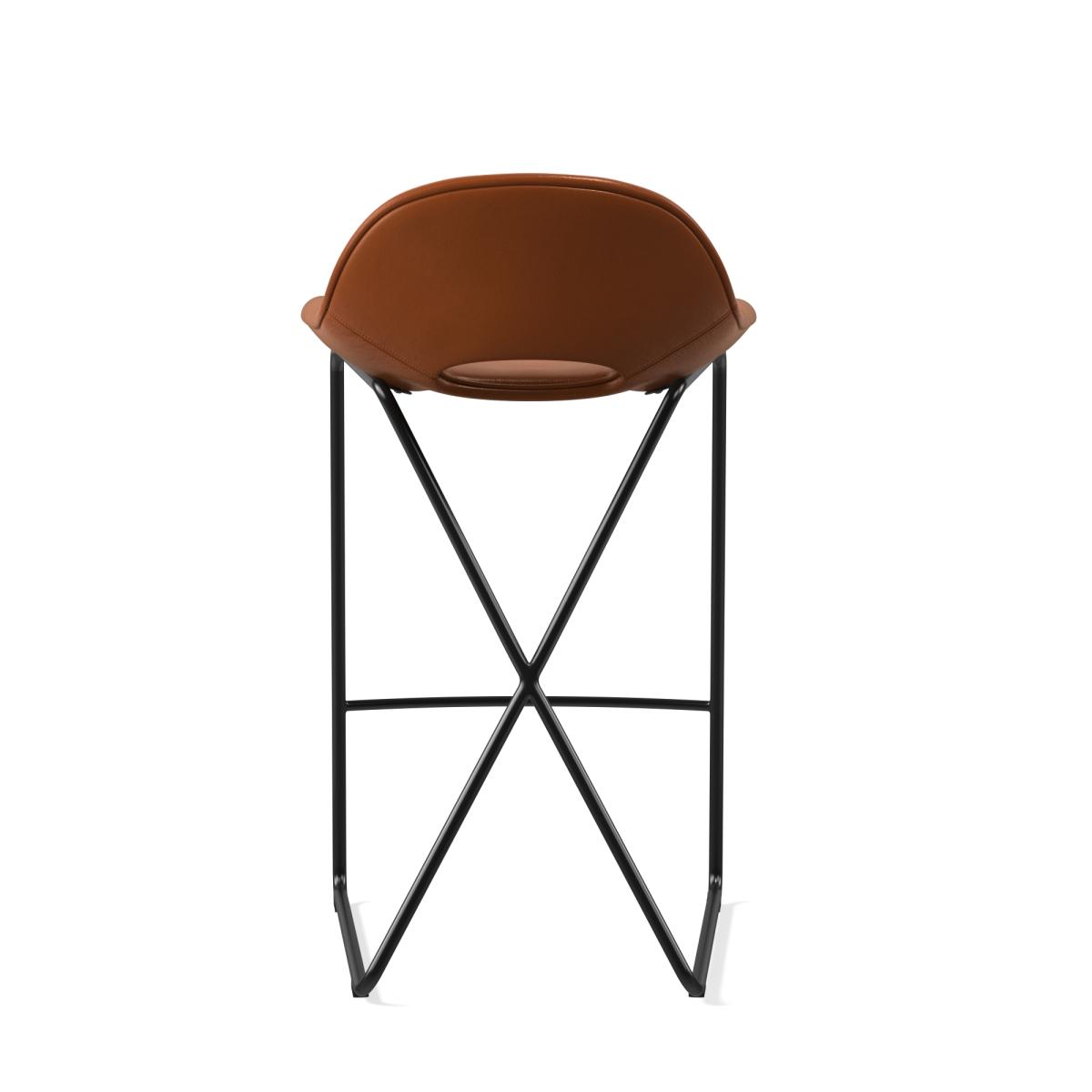 A staple of The Conran Shop's private furniture offering since 2015, Magnus Long's Cross Leg collection presents the newly enhanced leather Cross Leg Counter Stool. Flaunting a modern design that was bestowed the Design Guild Mark's Jonathan Hindle Prize for excellence in 2015, the chair features a striking silhouette, dressed in our exclusive Brenta Leather. The idea for this chair came about from wrapping Post-it notes into cones to create a supple but stable shell for the seat. Crafted in Italy, a. High-strength tubular steel black frame supports the shell, while the back legs metal cross over, giving the chair both its name and unique detail.