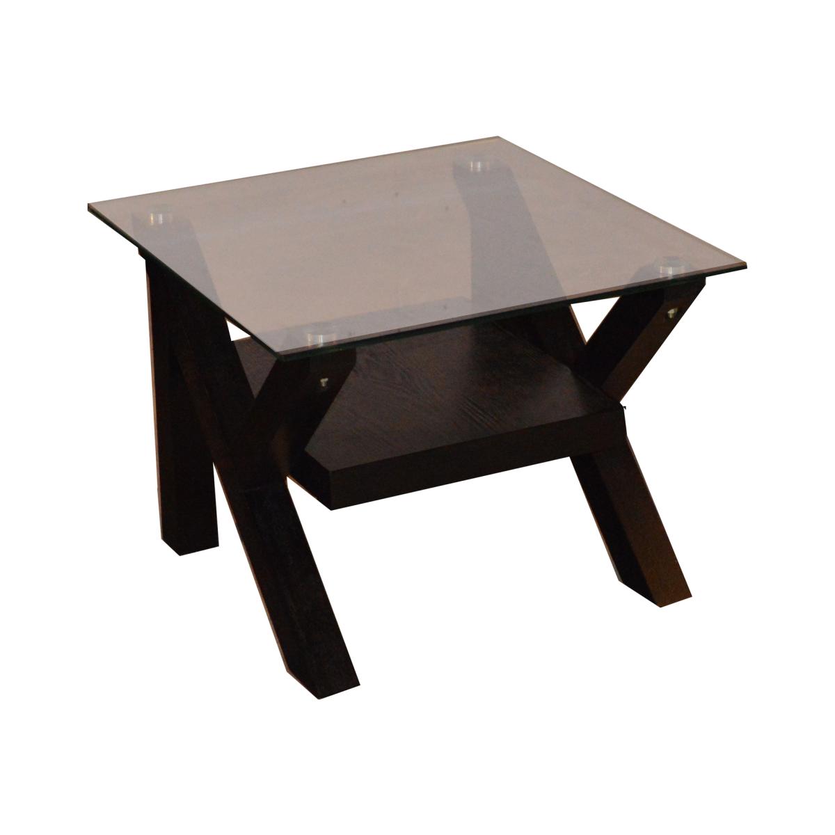 A sophisticated cross coffee table, this coffee table is perfect for making a focal point in your living room or study glass topped with one shelf and a solid MDF base.