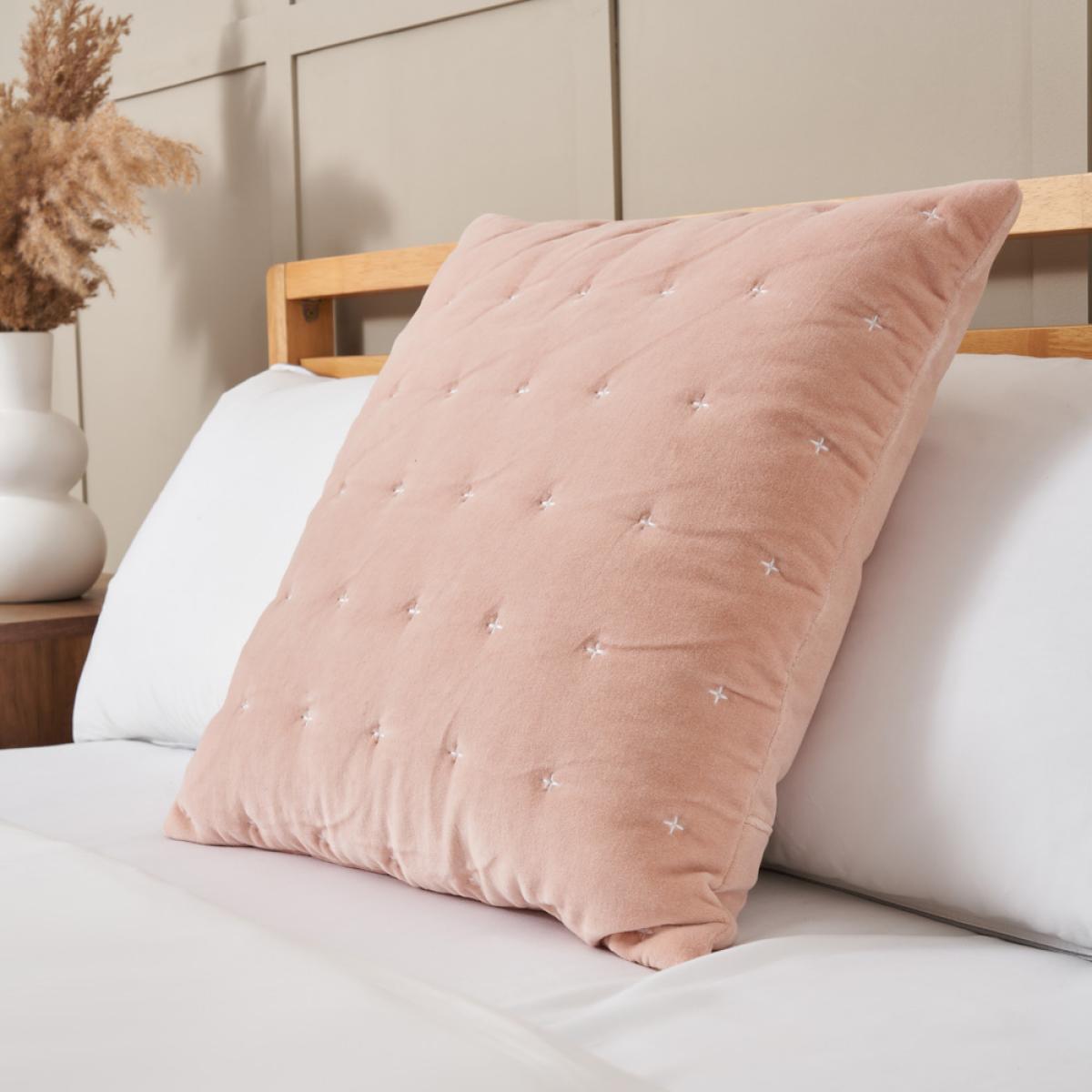 This pink cross stitch cushion is a lovely way to add a soft touch of colour and texture to a neutral or pastel-toned interior. I love how the quilting detail brings subtle sophistication, making it suitable for both classic and contemporary settings. It works particularly well styled on beds, armchairs, or even as a pop of colour on a neutral sofa. For practical styling, consider pairing it with other cushions of varying textures and sizes to create a layered, inviting look. Its blush hue is versatile enough to complement both feminine schemes and more minimalist spaces, making it a reliable accessory for updating the look of any room.