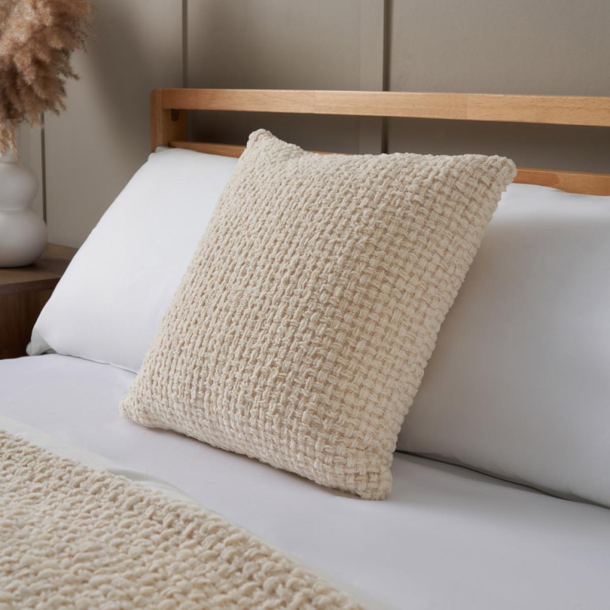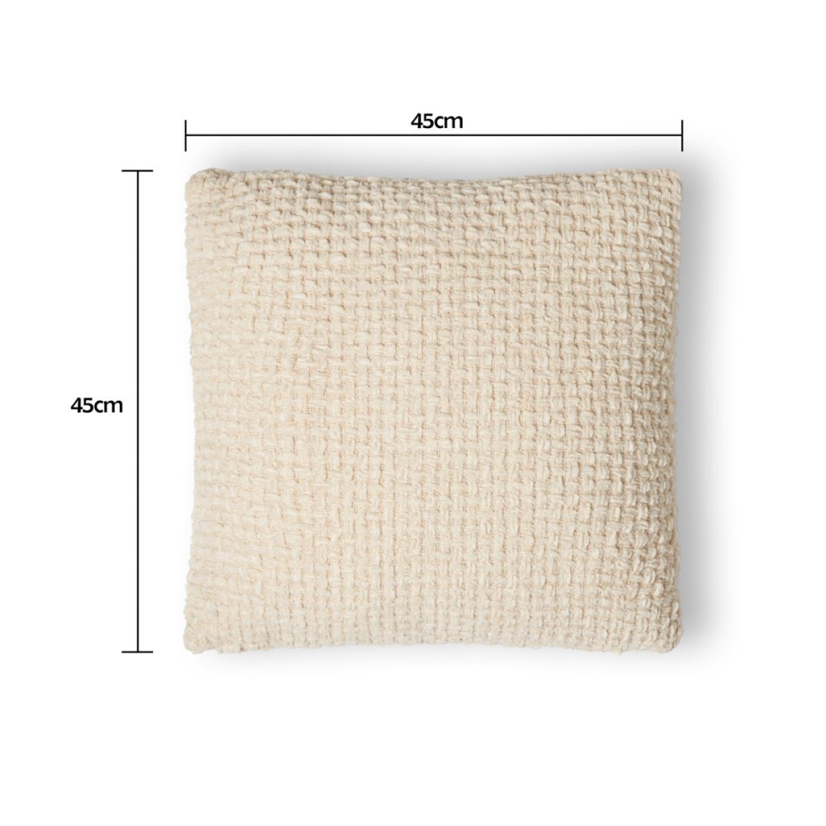 Bring timeless elegance to your home with the Cross Weave Cushion in Cream. The soft woven texture enhances its visual appeal, while the neutral cream colour ensures effortless styling. Whether used alone or mixed with patterned cushions, this piece adds a touch of sophistication to any space. Classic cream shade for a clean, refined look; Cross weave texture adds a stylish tactile element; Perfect for layering with other cushions in any setting.