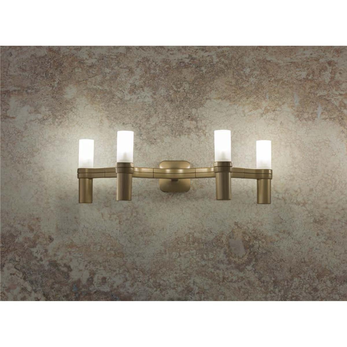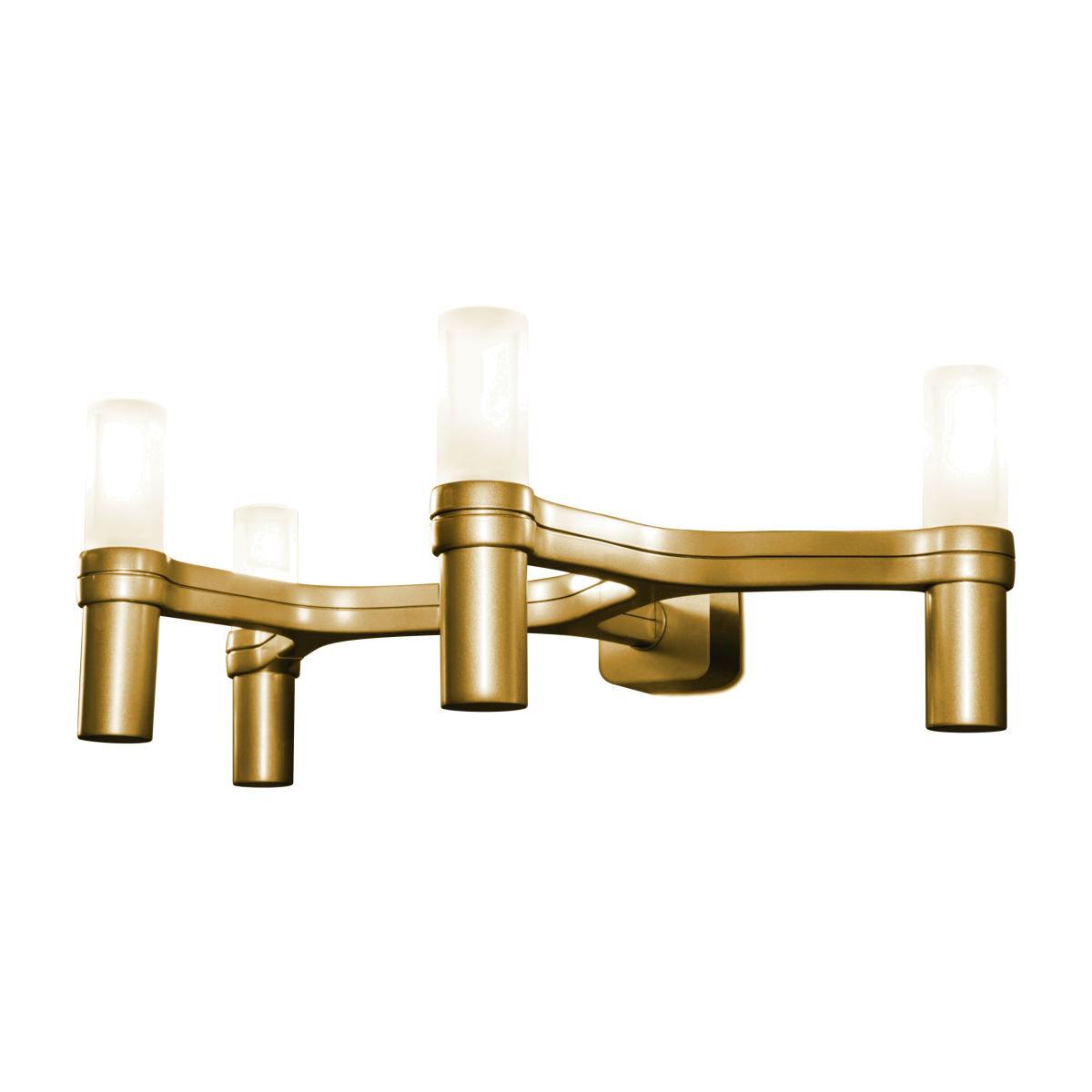 Wall lamps, with modular structure in die-casted aluminium and sandblasted glass diffusers. Structure in aluminium hand polished with golden finish.