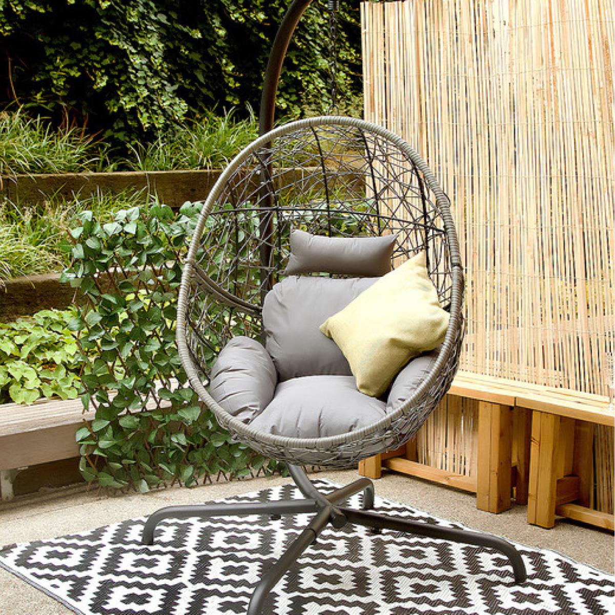 I love this Croxley rattan hanging chair for its contemporary take on a classic design, offering a cosy, inviting space to relax outdoors. Its grey tone makes it versatile enough to blend with both modern and bohemian garden settings, and you can enhance its look with neutral or colourful cushions for added comfort. Practical styling tips include pairing it with soft outdoor throws and placing it near lush greenery or on a textured rug, as shown here, to create a laid-back yet stylish nook. It works particularly well in casual lounge areas, patios, or balcony spaces, giving your garden or balcony a relaxed, hygge-inspired vibe.
